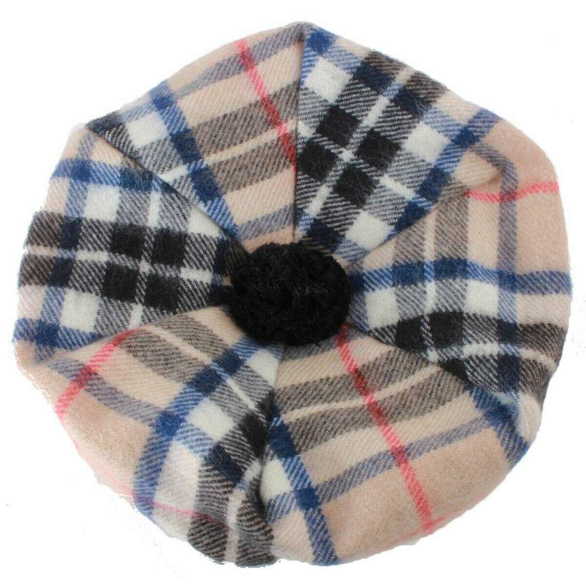 Locharron of Scotland Thomson Modern Lambswool Tam - Camel Beige / Black / Red