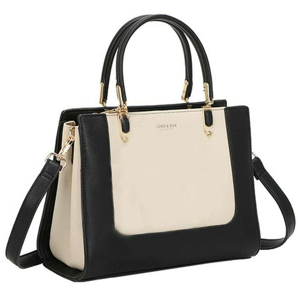 Ce sac à main bandoulière pour femme est composé à 100 % de polyuréthane, de couleur beige et provient de la marque Long and Son. Il mesure 20 cm (hauteur) x 27 cm (largeur) x 9 cm (profondeur). Tous les sacs sont livrés complets avec un emballage Long & Son. Le sac à main bandoulière Long and Son - Noir/Beige sophistiqué et girly est un incontournable si vous recherchez un sac chic de tous les jours pour habiller n'importe quelle tenue. Doté de deux compartiments séparés pour l'organisation et d'une poche intérieure ouverte et d'une poche intérieure zippée pour plus de rangement. Le haut zippé assure un port sécurisé pour garantir que vos affaires restent en sécurité lors de vos déplacements. Ce sac peut également servir de sac à main et de sac à bandoulière grâce à la simple fixation de la bandoulière réglable.