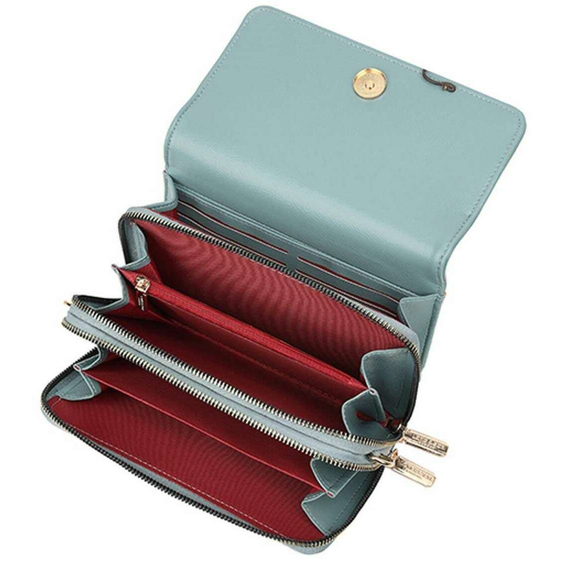 • Sangle réglable amovible , Fermeture éclair et fermeture magnétique , 2 sections , Compartiments multiples , Poche zippée pour la monnaie , 6 Porte-cartes , Compartiment pour billets