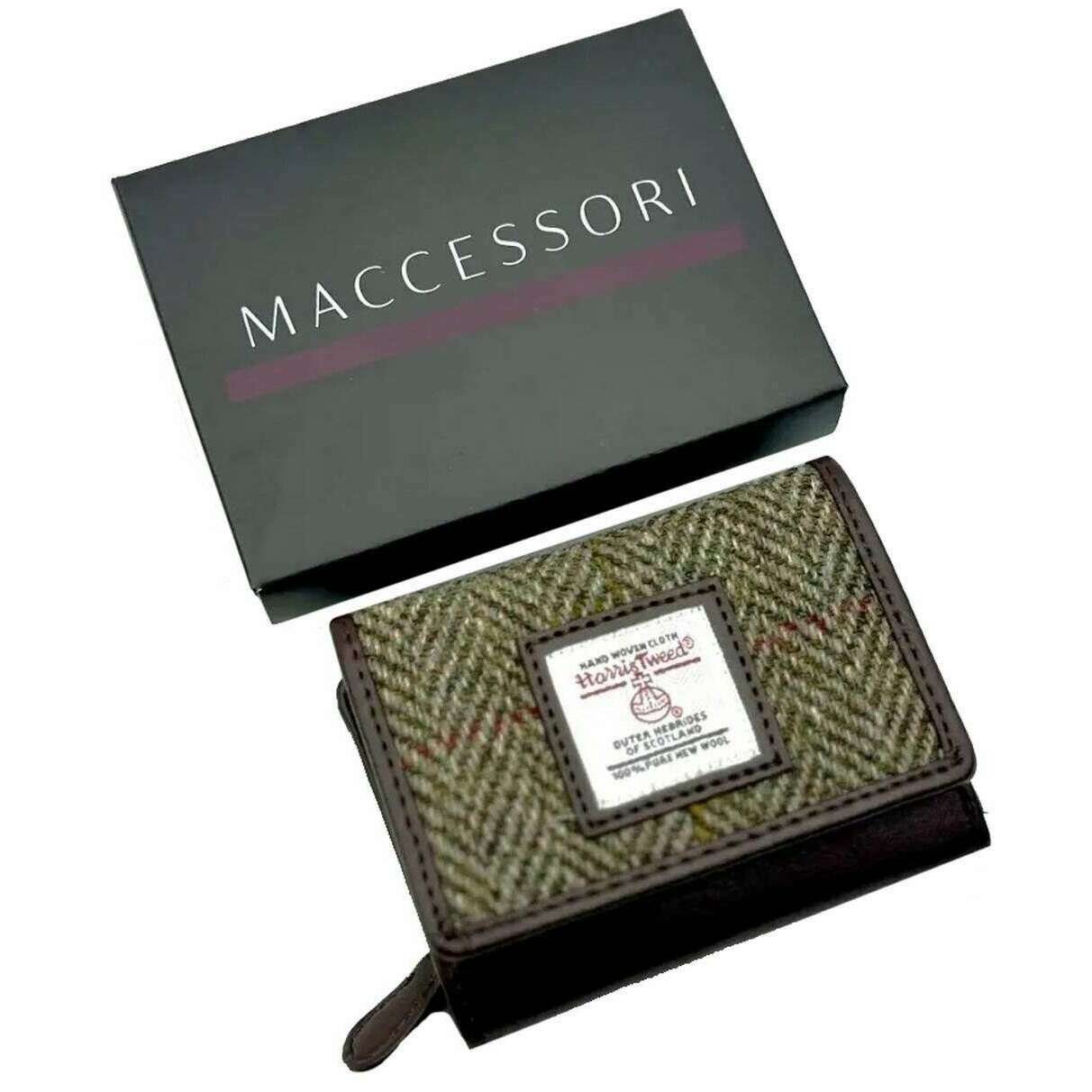 Porte-monnaie à trois volets Harris Tweed Maccessori - Country Green