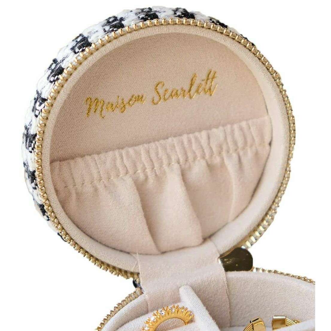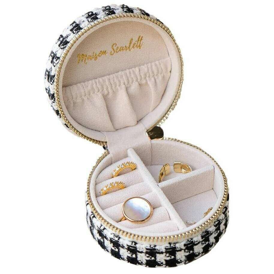 Maison Scarlett Yvonne Houndstooth Travel Jewelry Box - Black