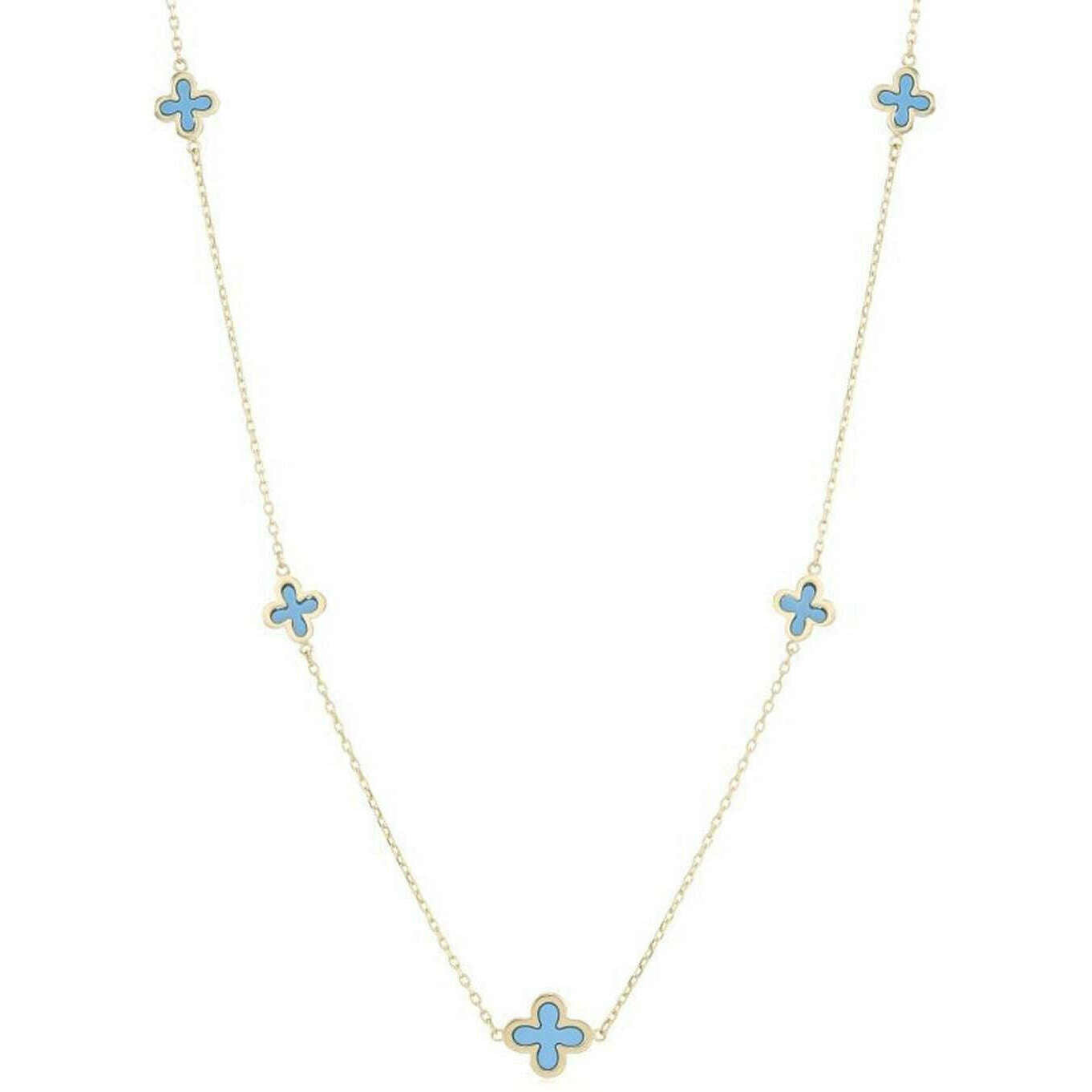 Collier à cinq fleurs Mark Milton - Or jaune/bleu turquoise