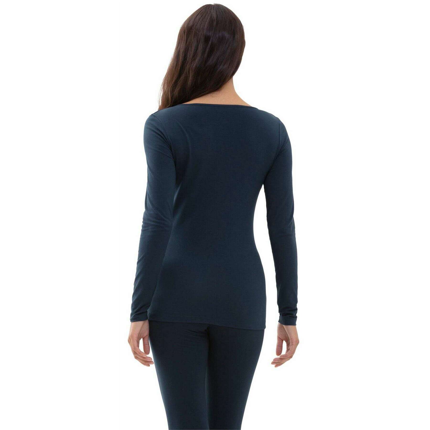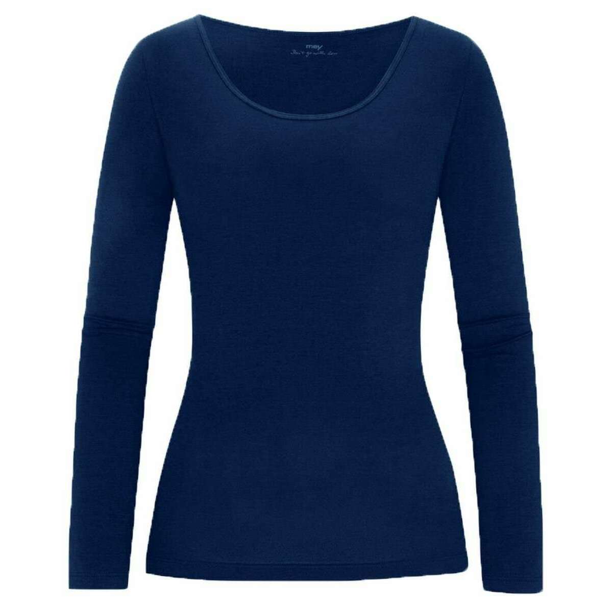 Top Mey Pur Coton à Manches Longues - Bleu Nuit