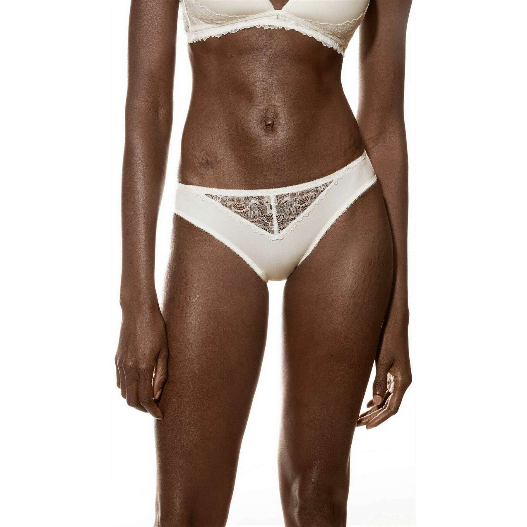 • OEKO-TEX Standard 100, Coupe taille basse, Taille plate, Insert en dentelle sur le devant, Ouvertures de jambe douces, Insert en coton sur le gousset, Dentelle bicolore