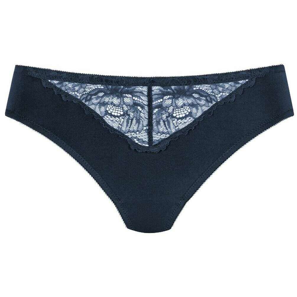 Ce mini slip luxueux pour femme de Mey est de couleur bleu nuit et est fabriqué à partir de 87 % de polyamide et de 13 % d'élasthanne. De plus, le sous-vêtement bleu nuit est conçu dans un motif uni. Il est recommandé de le laver en machine à 30 degrés pour conserver ce sous-vêtement en bon état. Tous les sous-vêtements sont livrés avec mon emballage. Le Mini Slip Mey Luxurious - Bleu Nuit est un incontournable si vous recherchez un basique avec une touche magnifique pour une sensation féminine. Cette paire a une coupe taille basse, un empiècement en coton sur le gousset, des jambes sans couture et une taille plate qui contribuent à offrir un confort optimal au quotidien. Le devant en dentelle donne une touche sexy et élégante.