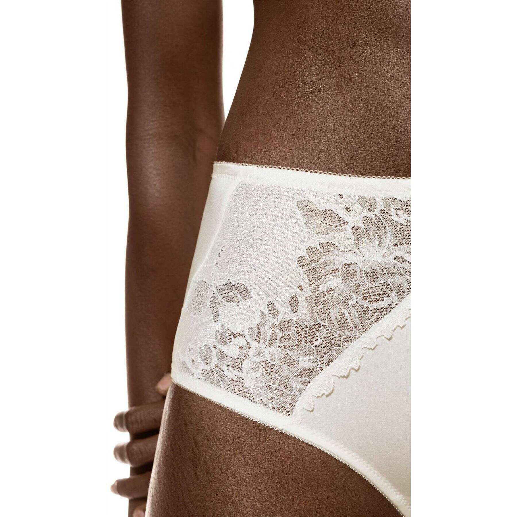 • OEKO-TEX Standard 100, Coupe taille haute, Côtés en dentelle, Taille plate, Ouvertures de jambe douces, Insert en coton sur le gousset, Dentelle bicolore, Maintien doux
