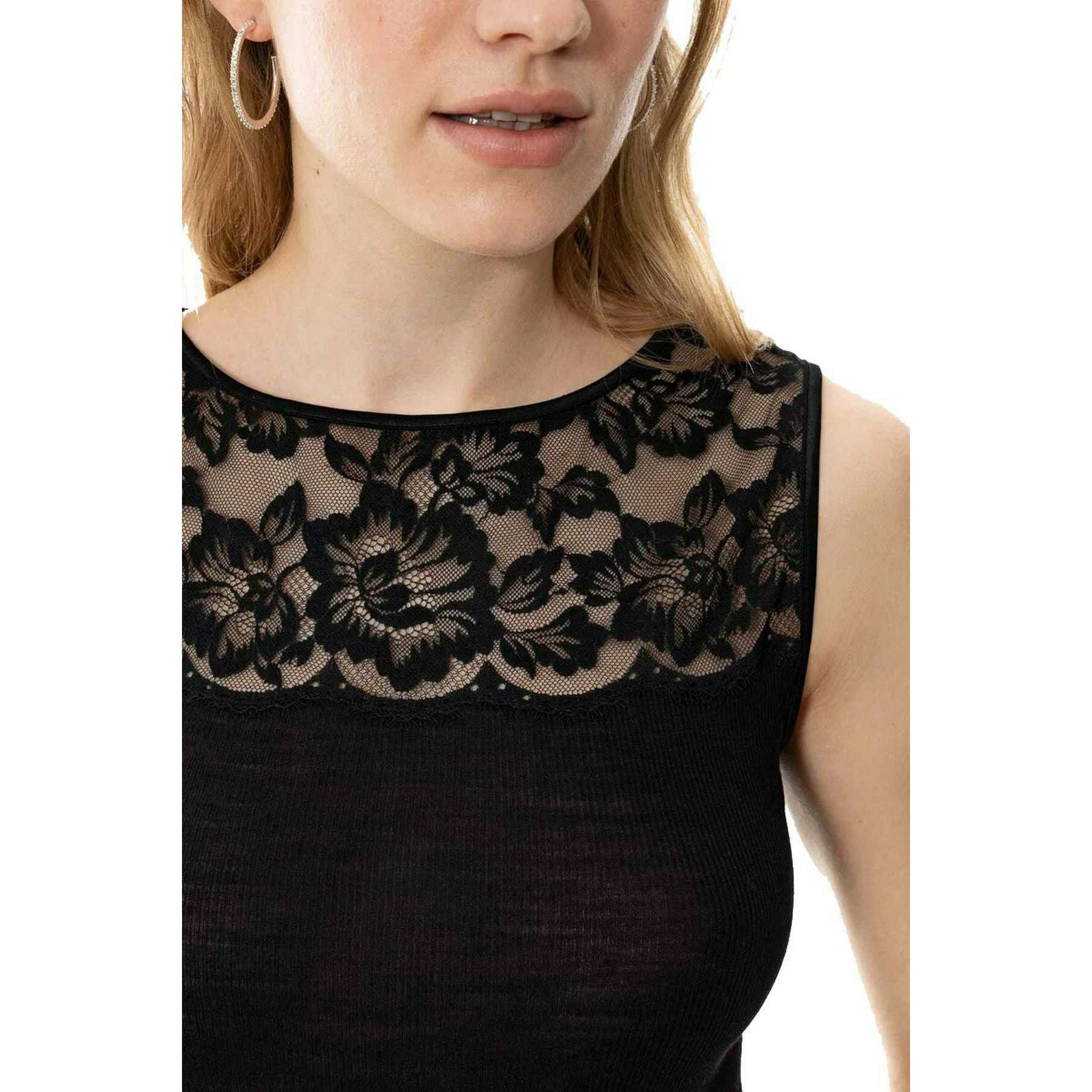 Ce love top en laine pour femme est confectionné par la marque Mey dans un coloris noir et est composé à 70% de laine scur et à 30% de soie. Le gilet noir est également conçu dans un motif uni. Mey a fabriqué ce haut en laine au Portugal. Il est recommandé de laver en machine à 30 degrés sur programme délicat, ne convient pas au sèche-linge pour conserver ce gilet en bon état. Tous les gilets sont livrés complets dans mon emballage. Le Top Mey Wool Love - Noir vous apportera certainement une touche de luxe avec sa matière d'une grande douceur ornée d'une dentelle élégante et féminine sur le buste. Doté de larges bretelles réglables et confortables et d'une encolure ronde, ce haut offre une coupe confortable avec une coupe et une sensation ajustées. Si vous recherchez quelque chose de chic et sans effort que vous atteindrez à chaque occasion, alors cela doit être ajouté à votre collection.