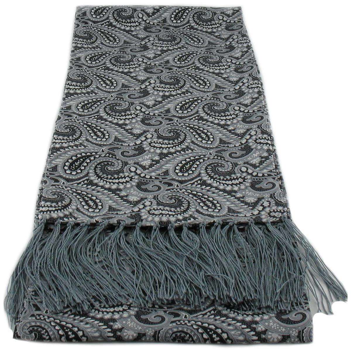 La luxueuse écharpe noire de Michelsons of London a un design unique partout dans Paisley qui est certainement accrocheur. Ce design est plus traditionnel et sera l'accessoire parfait pour compléter une tenue. Ces écharpes Michelsons sont faites de soie 100% pure et ont des glands noués à la main de chaque côté pour le rendre élégant.
