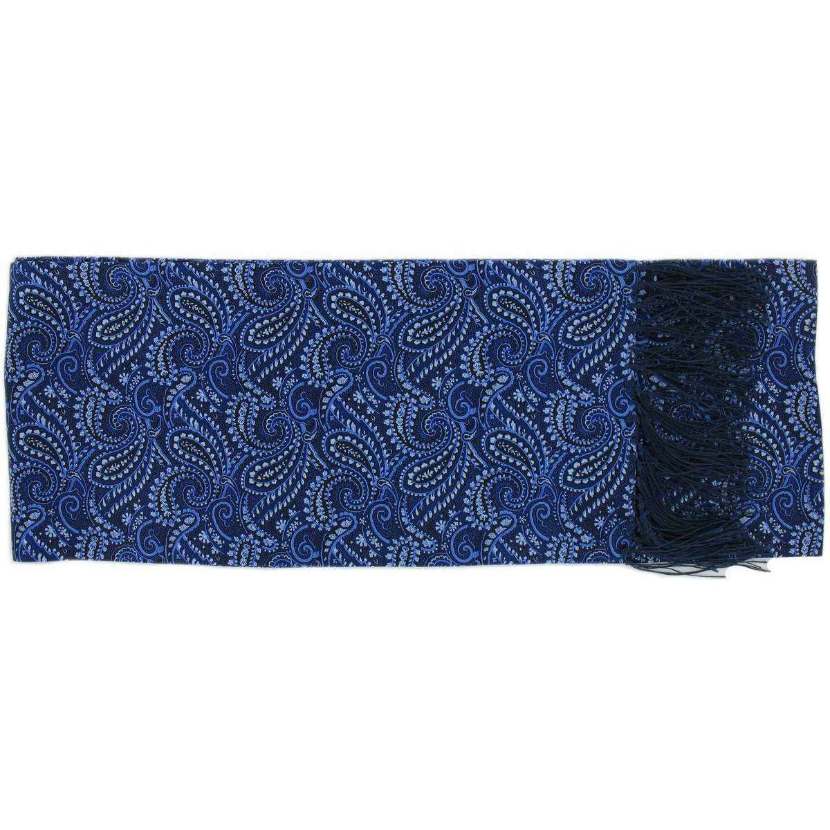 La luxueuse écharpe bleue de Michelsons de Londres a un design unique partout dans Paisley qui est certainement accrocheur. Ce design est plus traditionnel et sera l'accessoire parfait pour compléter une tenue. Ces écharpes Michelsons sont faites de soie 100% pure et ont des glands noués à la main de chaque côté pour le rendre élégant.