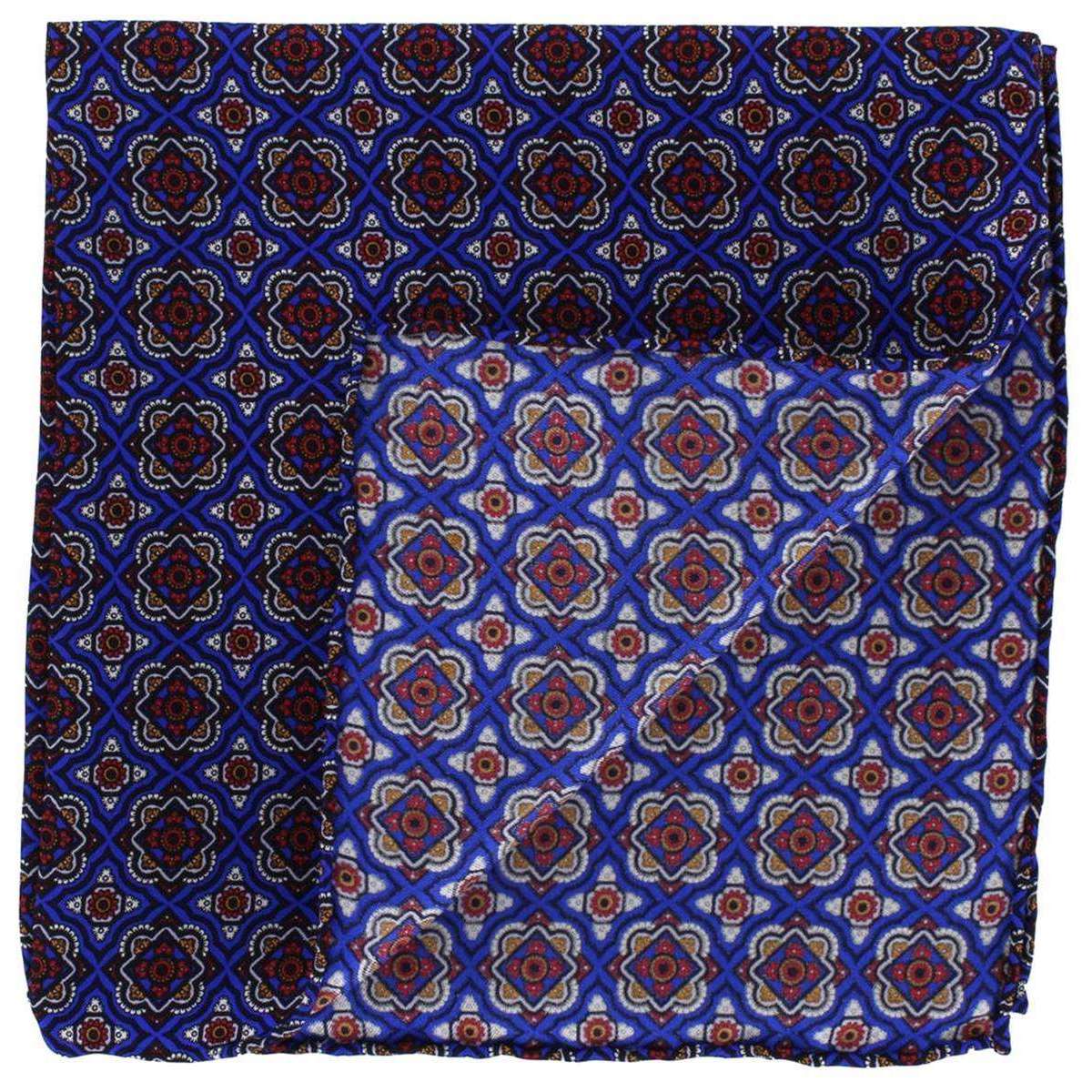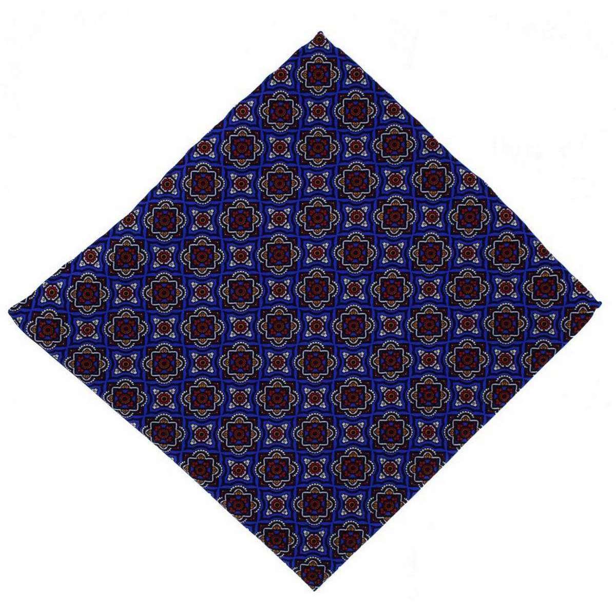 Michelsons of London Bold Medallion Silk Pocket Square - Bleu