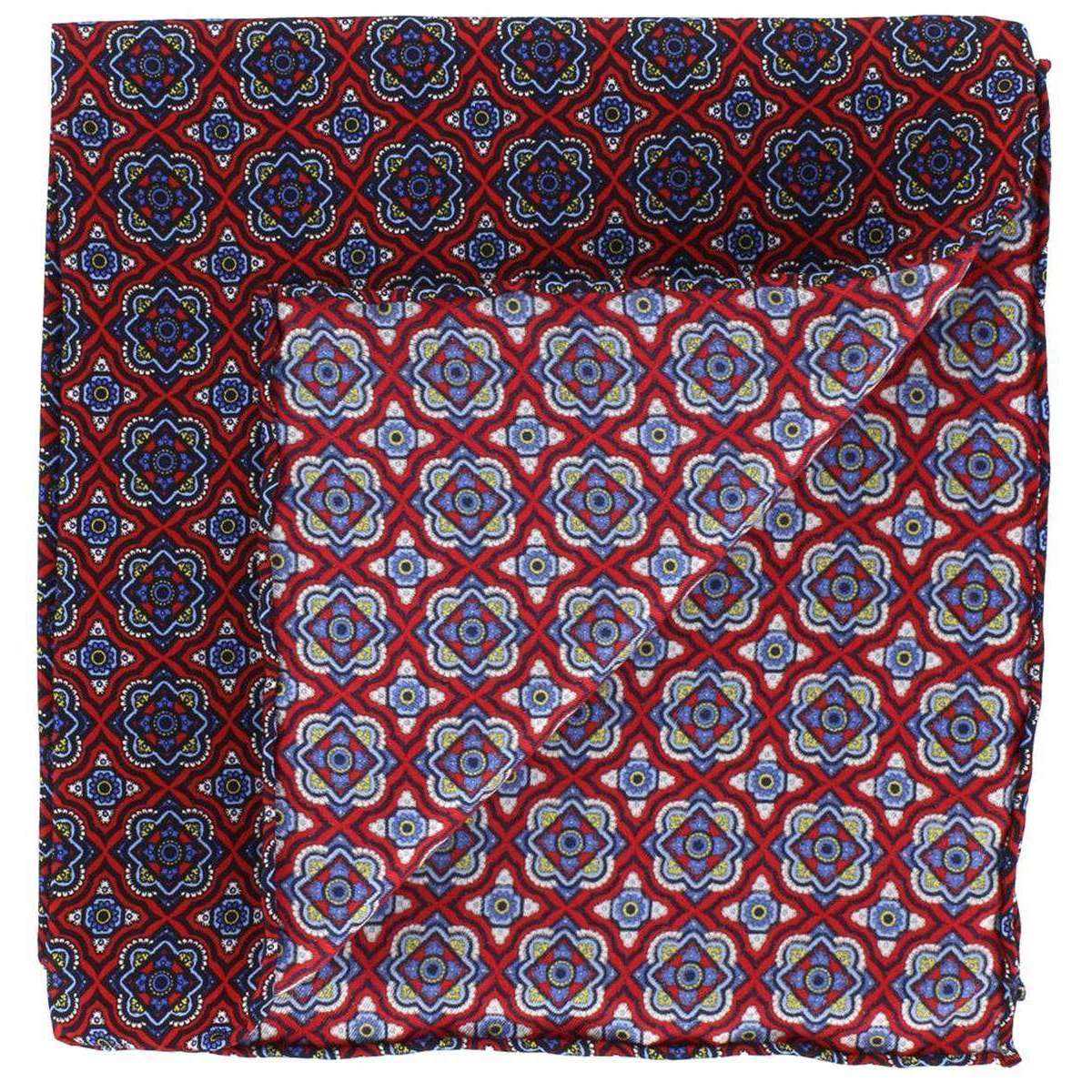 Michelsons of London Bold Medallion Silk Pocket Square - Red