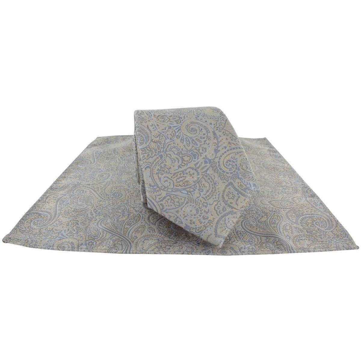MICHELSONS OF LONDON CLATINE PAISLEY POLYESTER TIE ET ​​POCKET SLACE SET - TAUPE