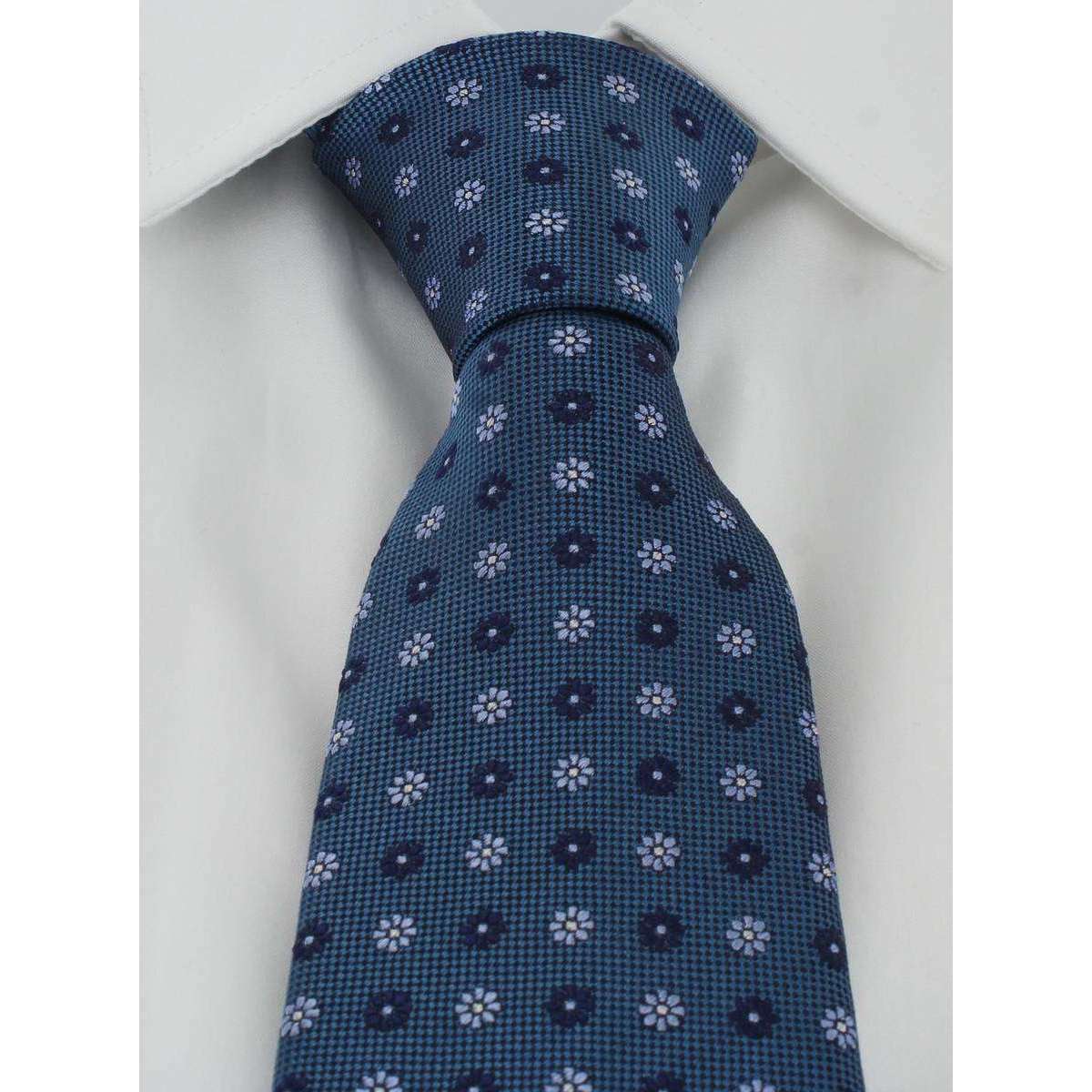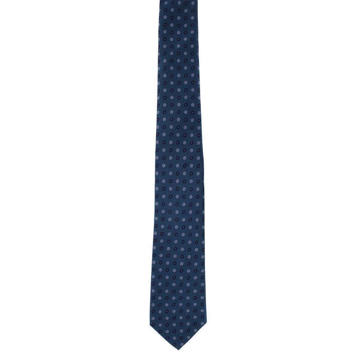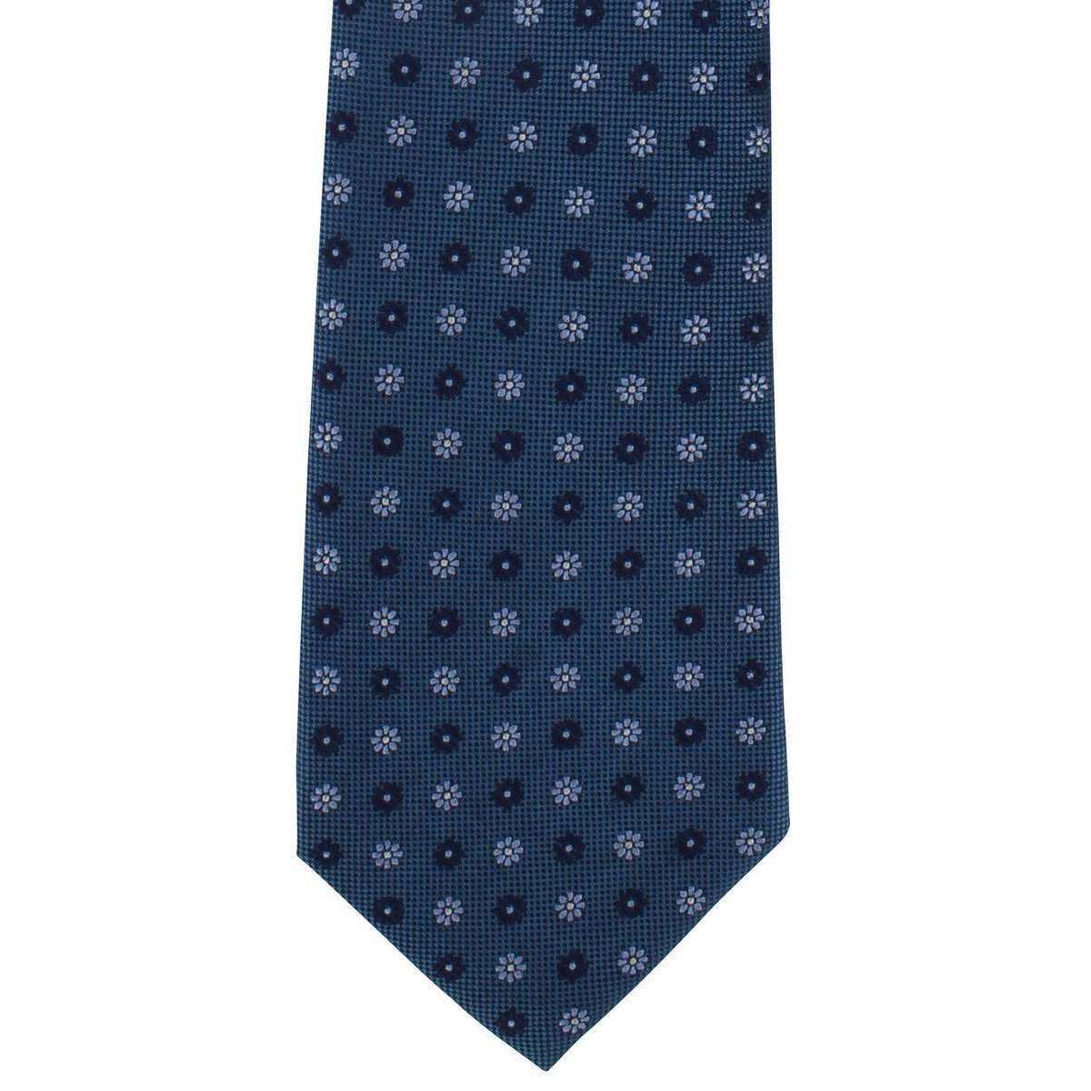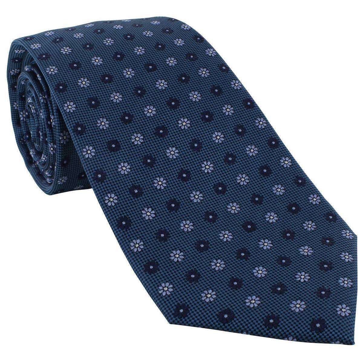 Michelsons of London Daisy Neat Silk Tie - Teal/Light Blue
