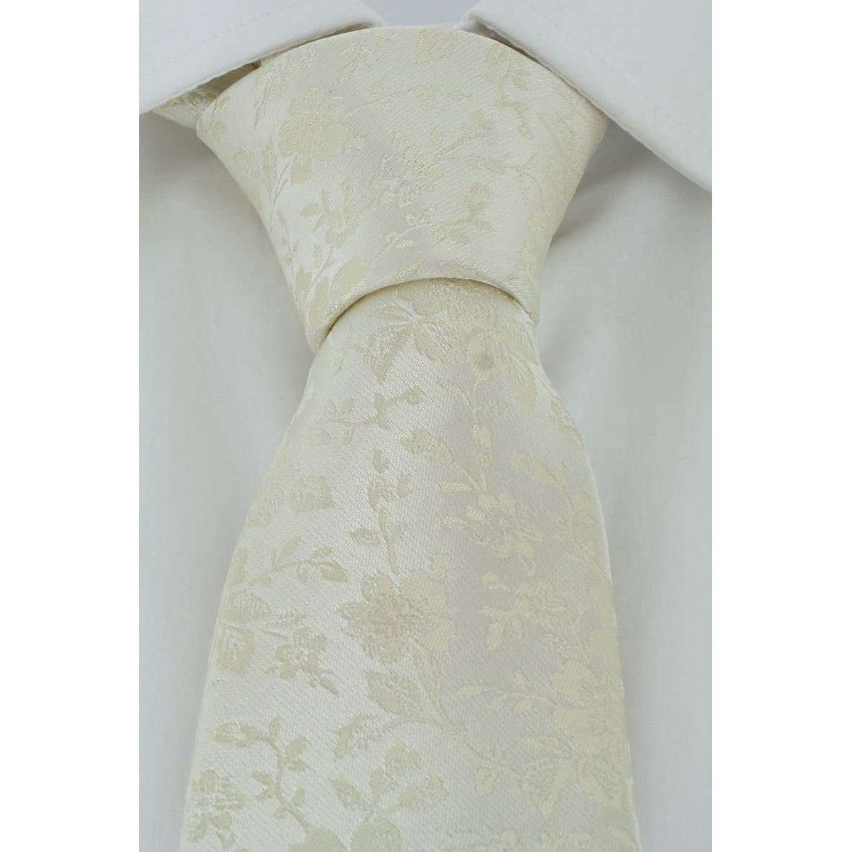 MICHELSONS OF LONDON Cravate de mariage floral délicate et ensemble de poche - Crème - Crème
