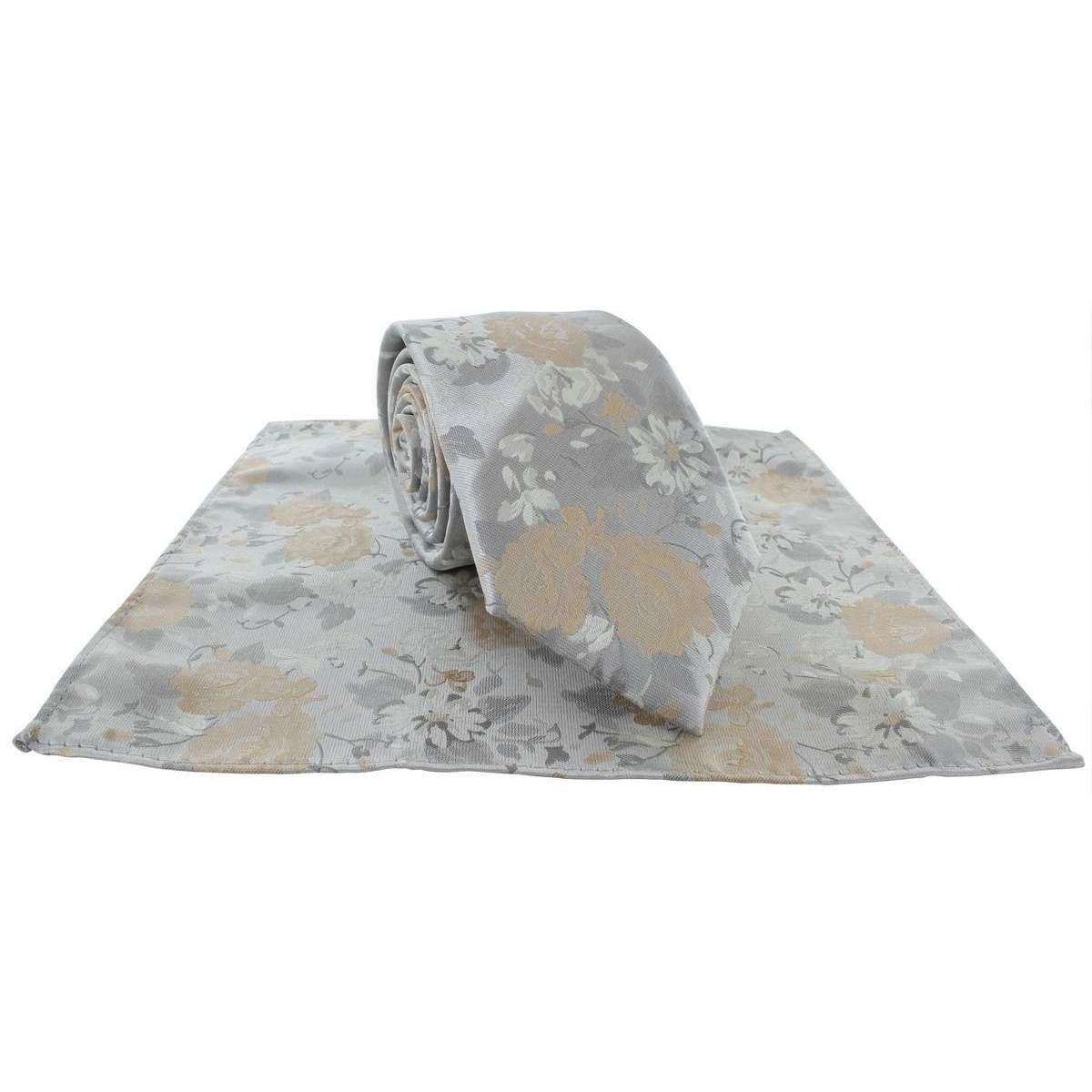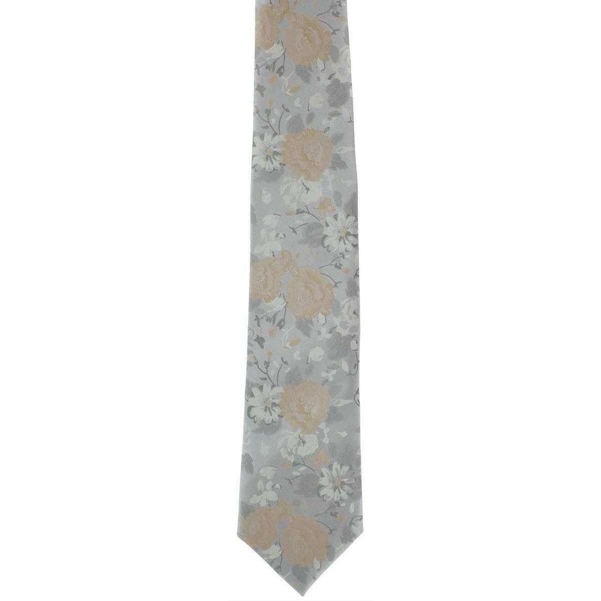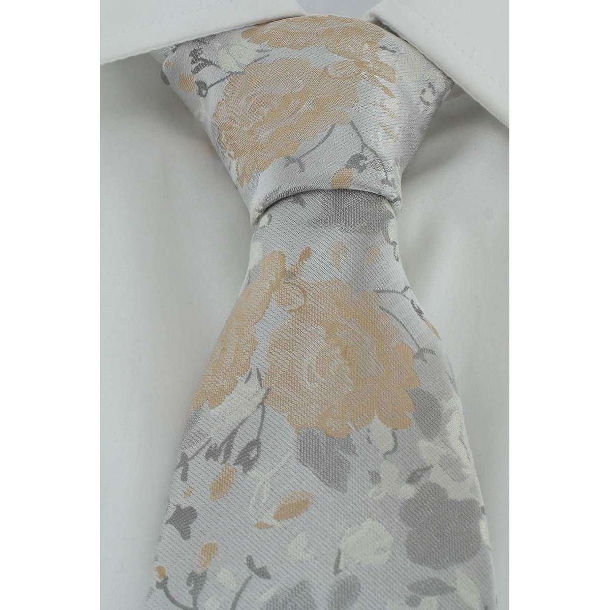 MICHELSONS OF LONDON FLORAL MARIAL TIE AND POCKING SLACE - GOLD / ECRU