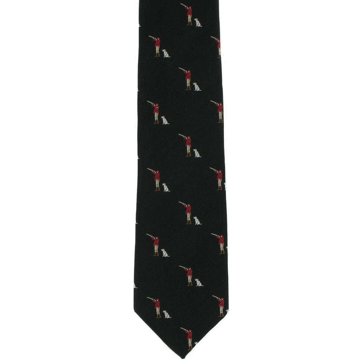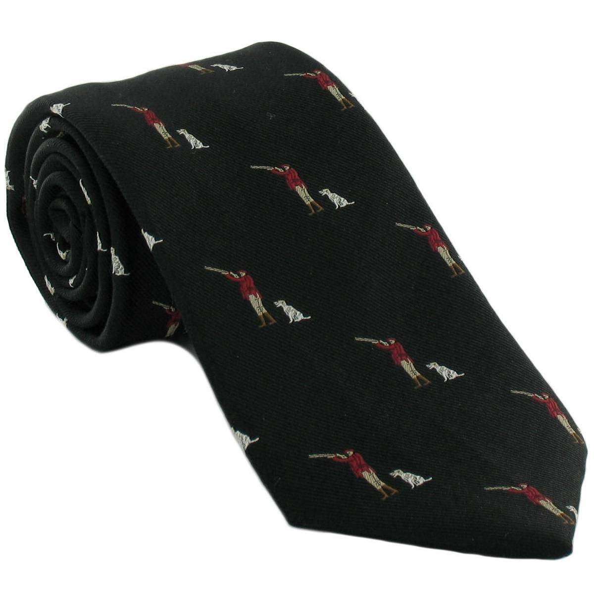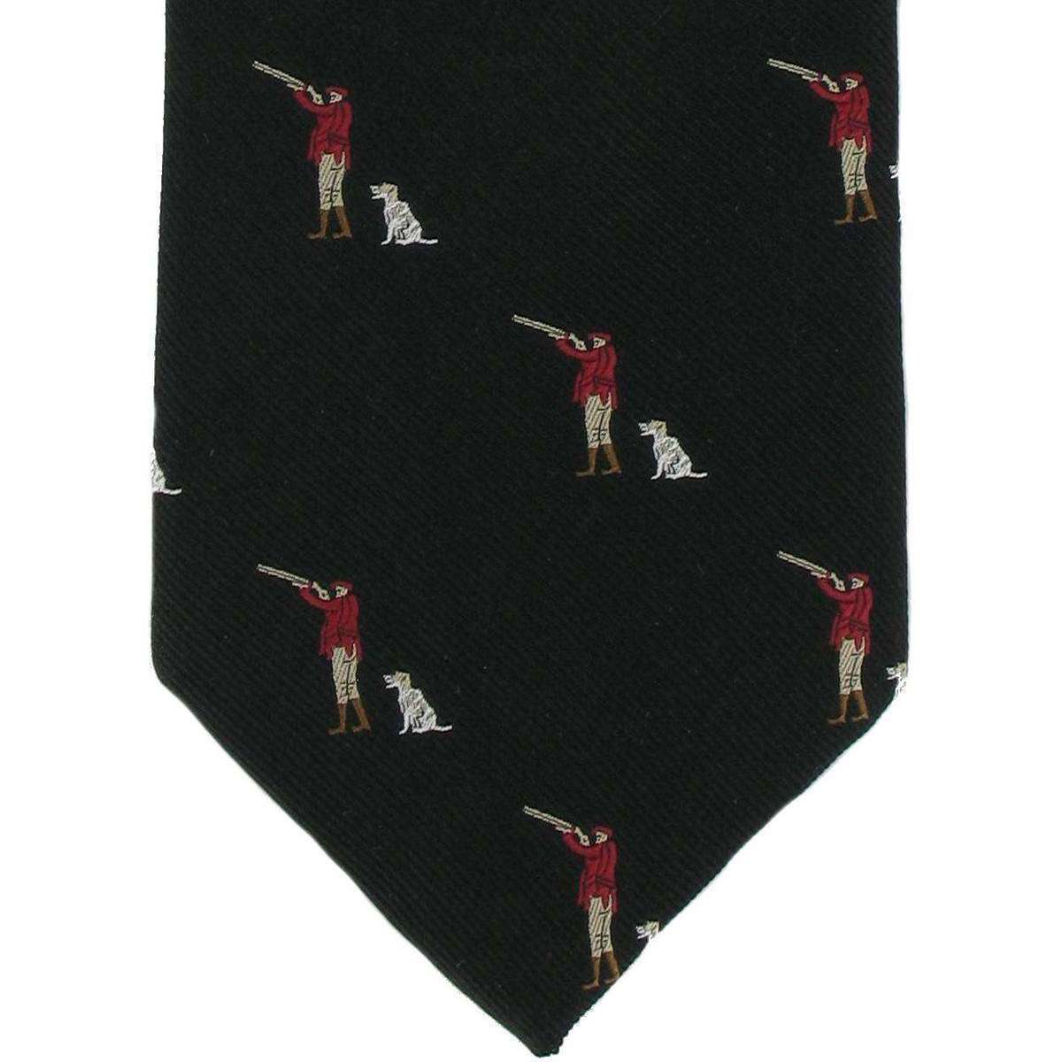 Cette égalité est vraiment différente du reste car elle provient de la gamme country exclusive par Michelsons de Londres. Le design unique présente des images d'un homme de pistolet et d'un chien de canon dans une ligne diagonale à travers la cravate. Cette cravate noire est faite à partir de 100% de la soie tissée luxueuse, ce qui rend la cravate fantastique. Cette cravate exquise rendra n'importe quelle tenue complète.