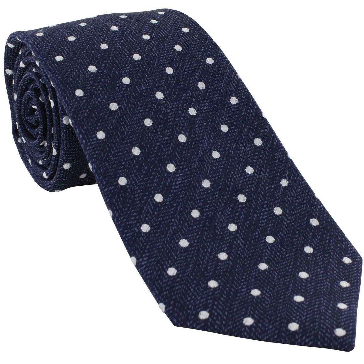 Michelsons of London Herringbone Spot Silk Tie - Navy