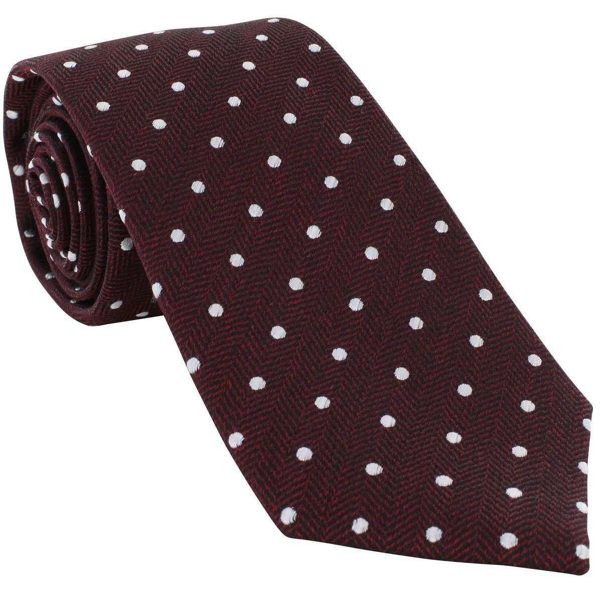 Michelsons of London Herringbone Spot Silk Tie - Wine