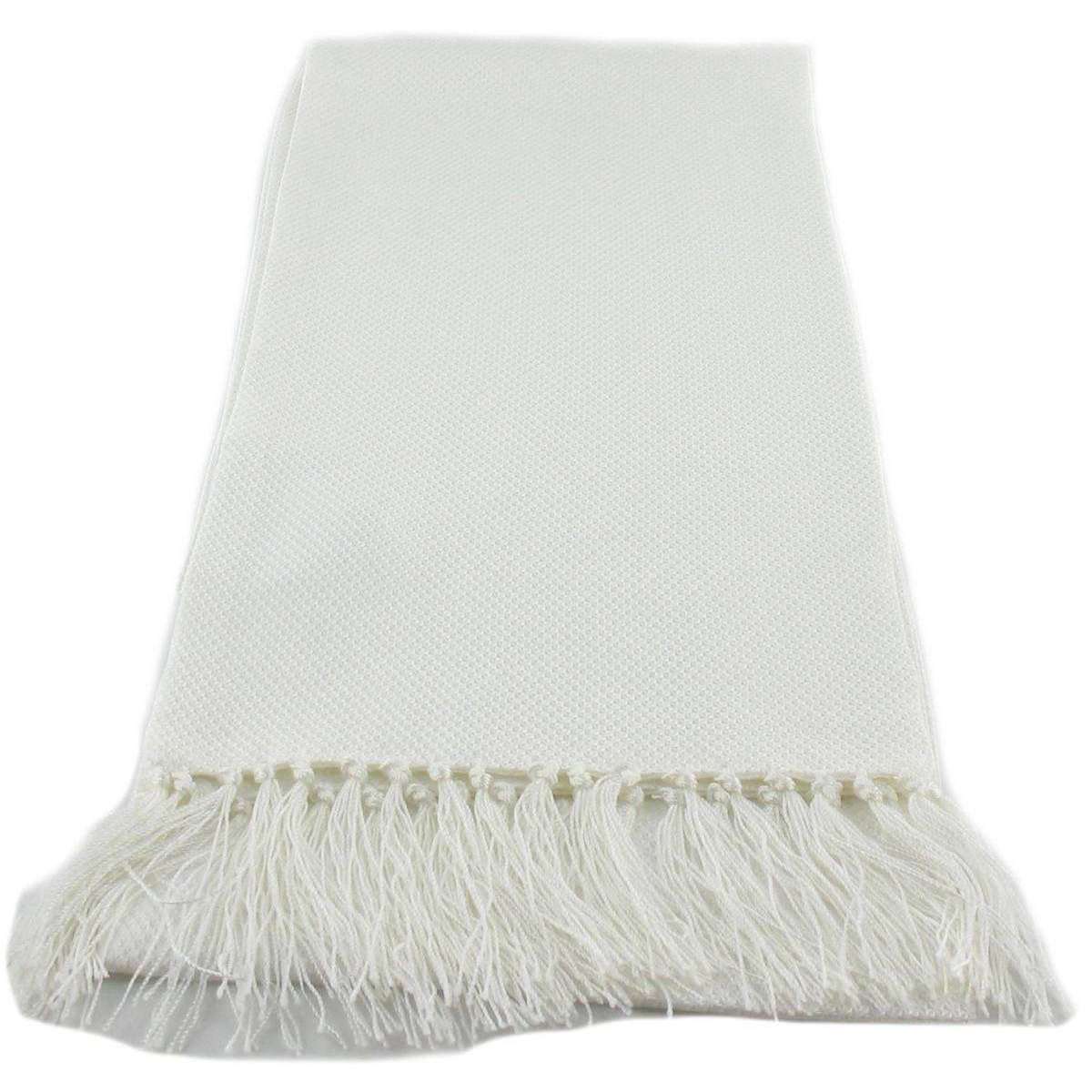 This plush white narrow dress scarf is a more formal, smart silk scarf so it is just the thing for an evening out. This luxury scarf by Michelsons of London has a textured a unique micro square design and is made of 100% soft silk. This narrow silk scarf has hand knot tassels on each side making the scarf much more stylish.