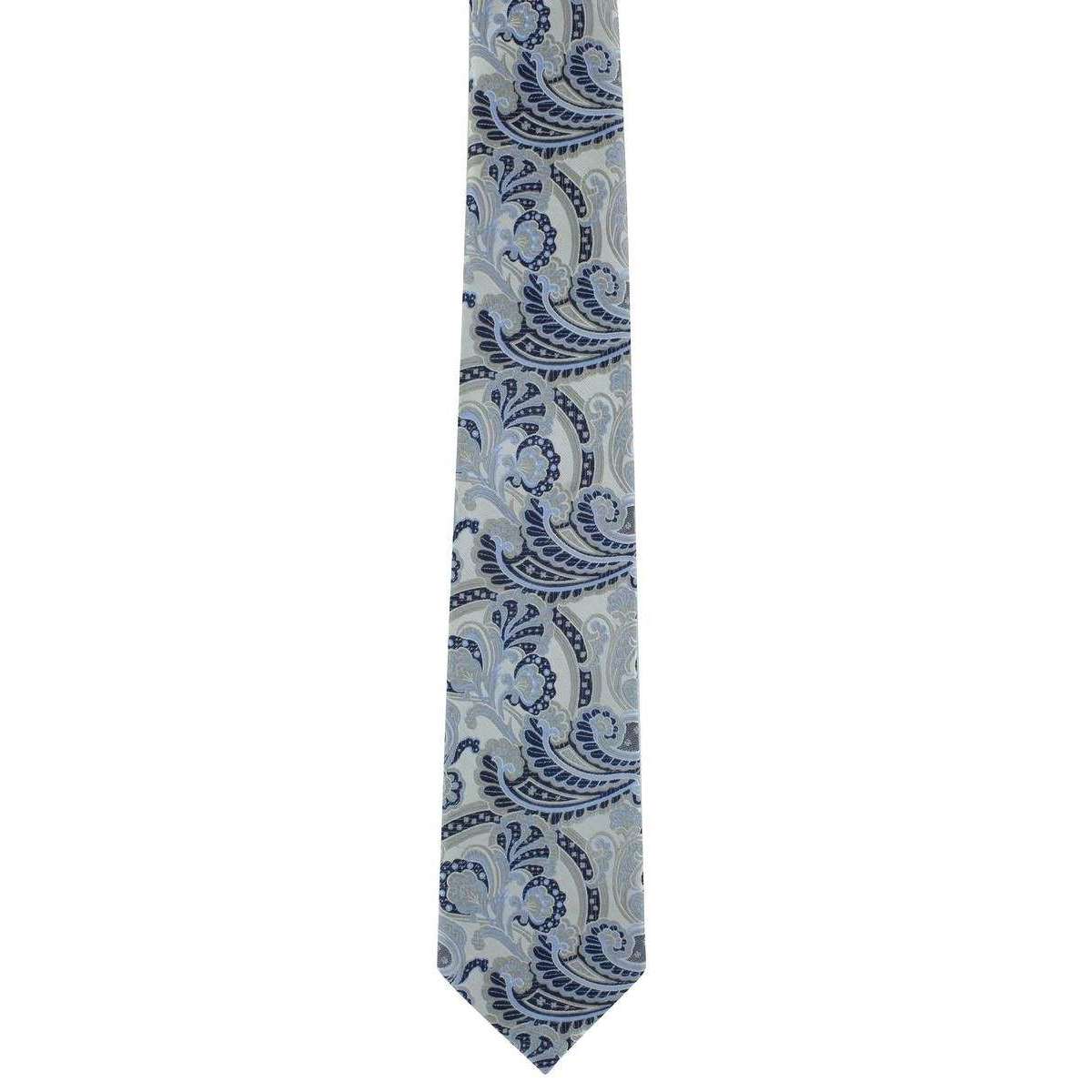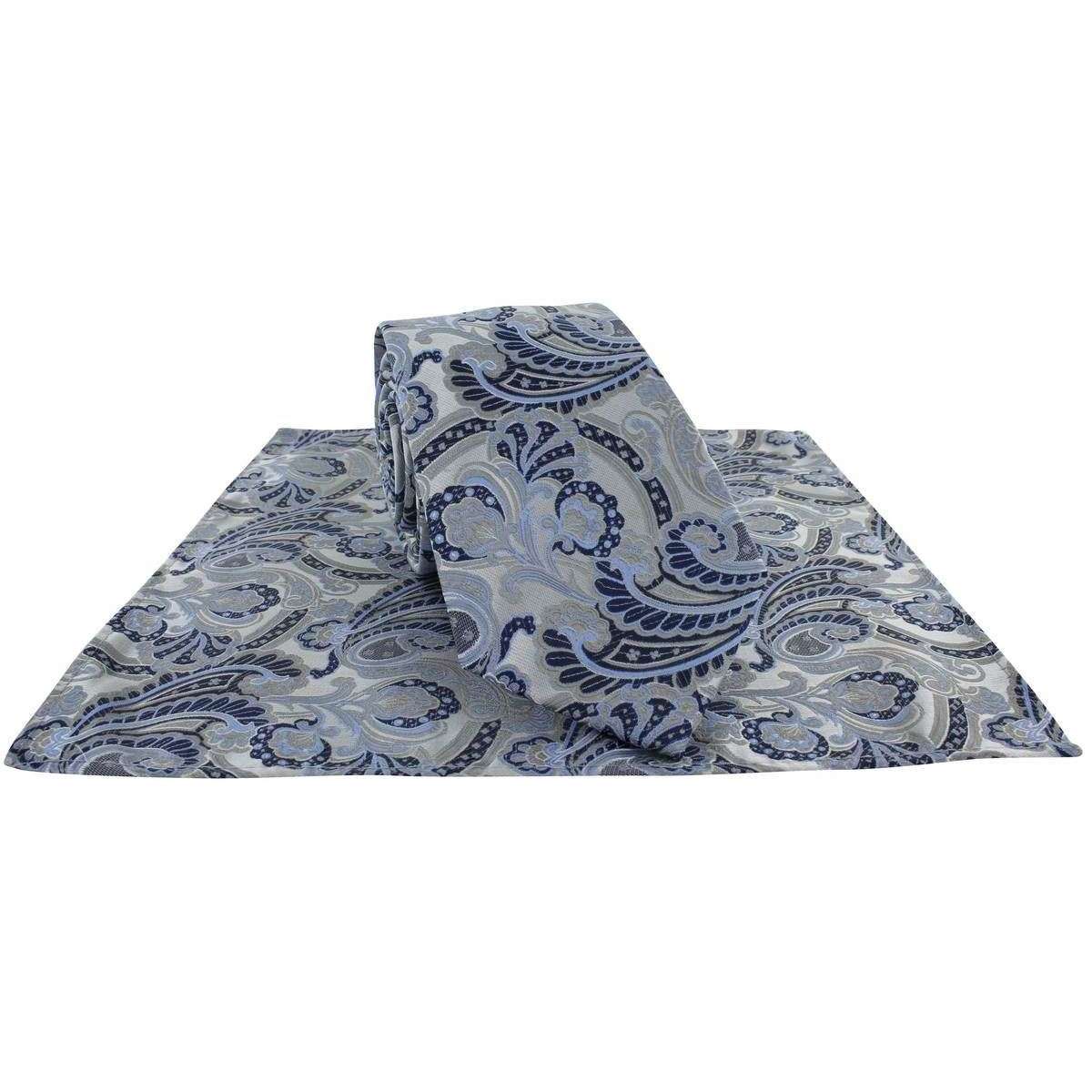 MICHELSONS OF LONDON ORNALENTAL POISLEY POLYESTER TIE ET ​​POCKING SLACE SET - GREN / BLEU