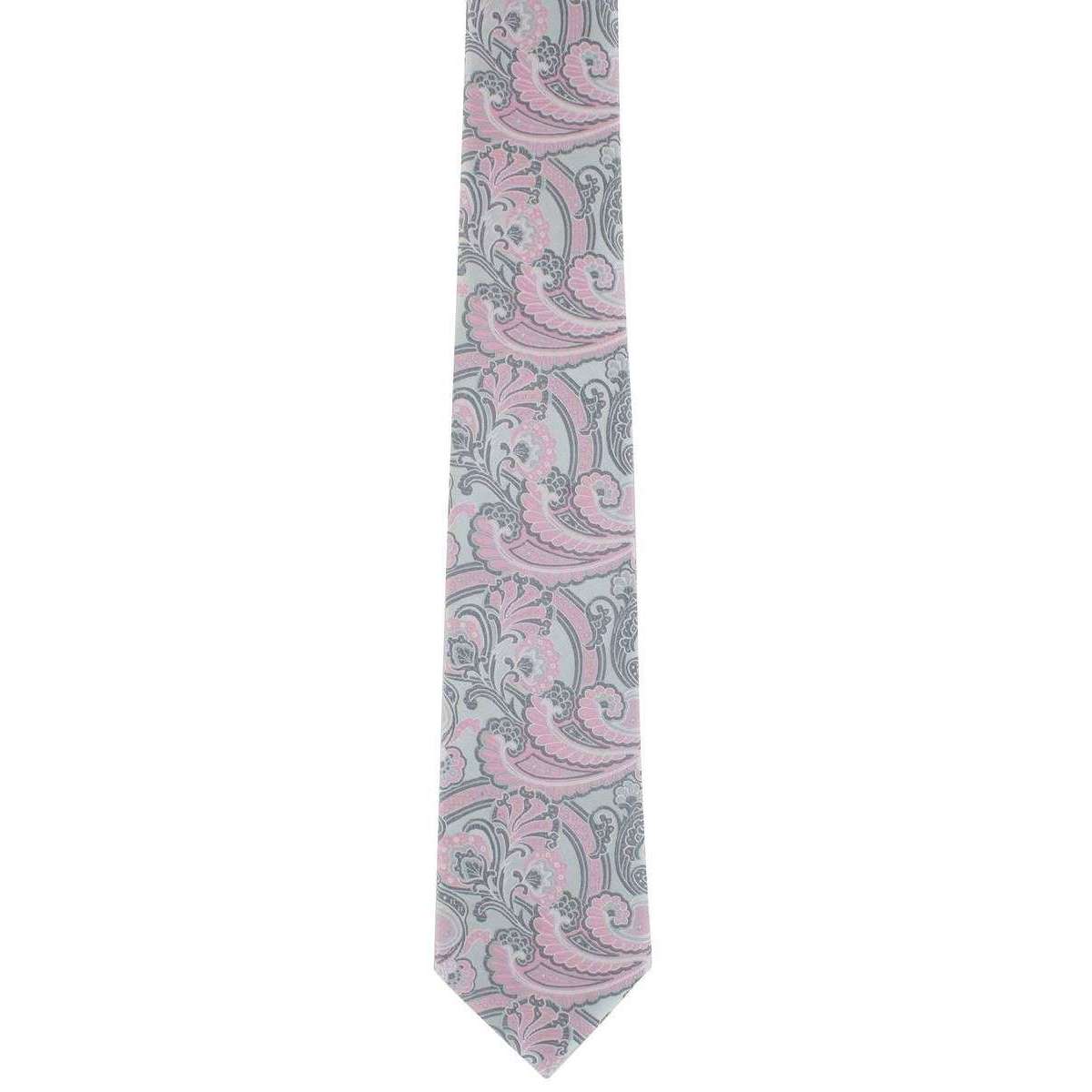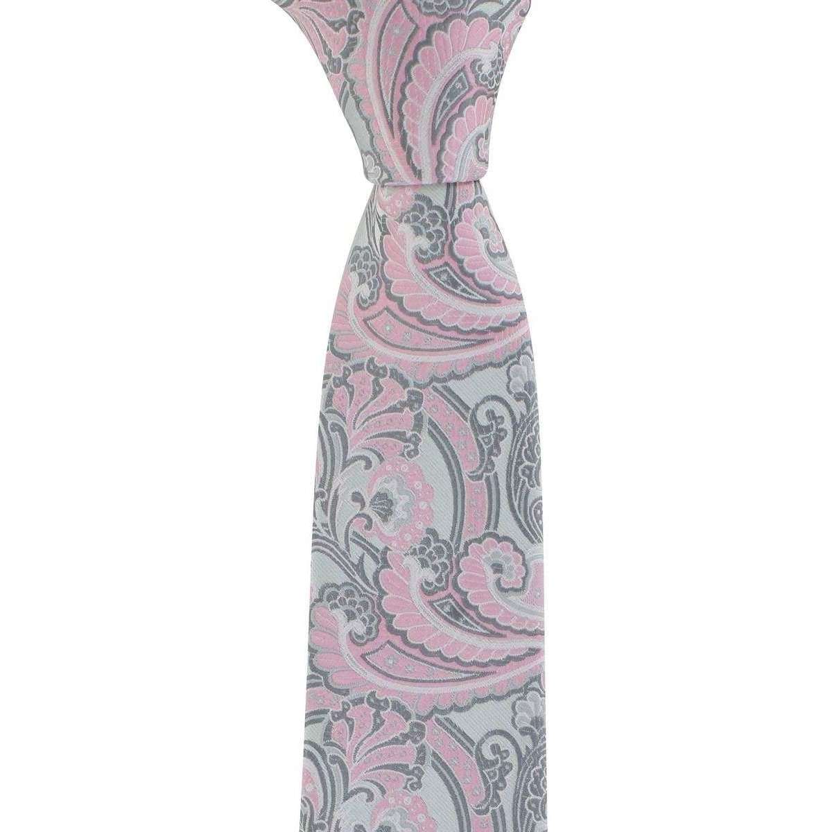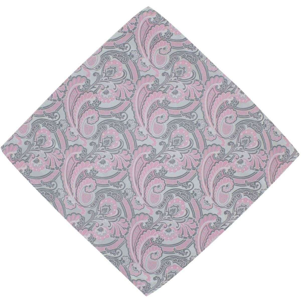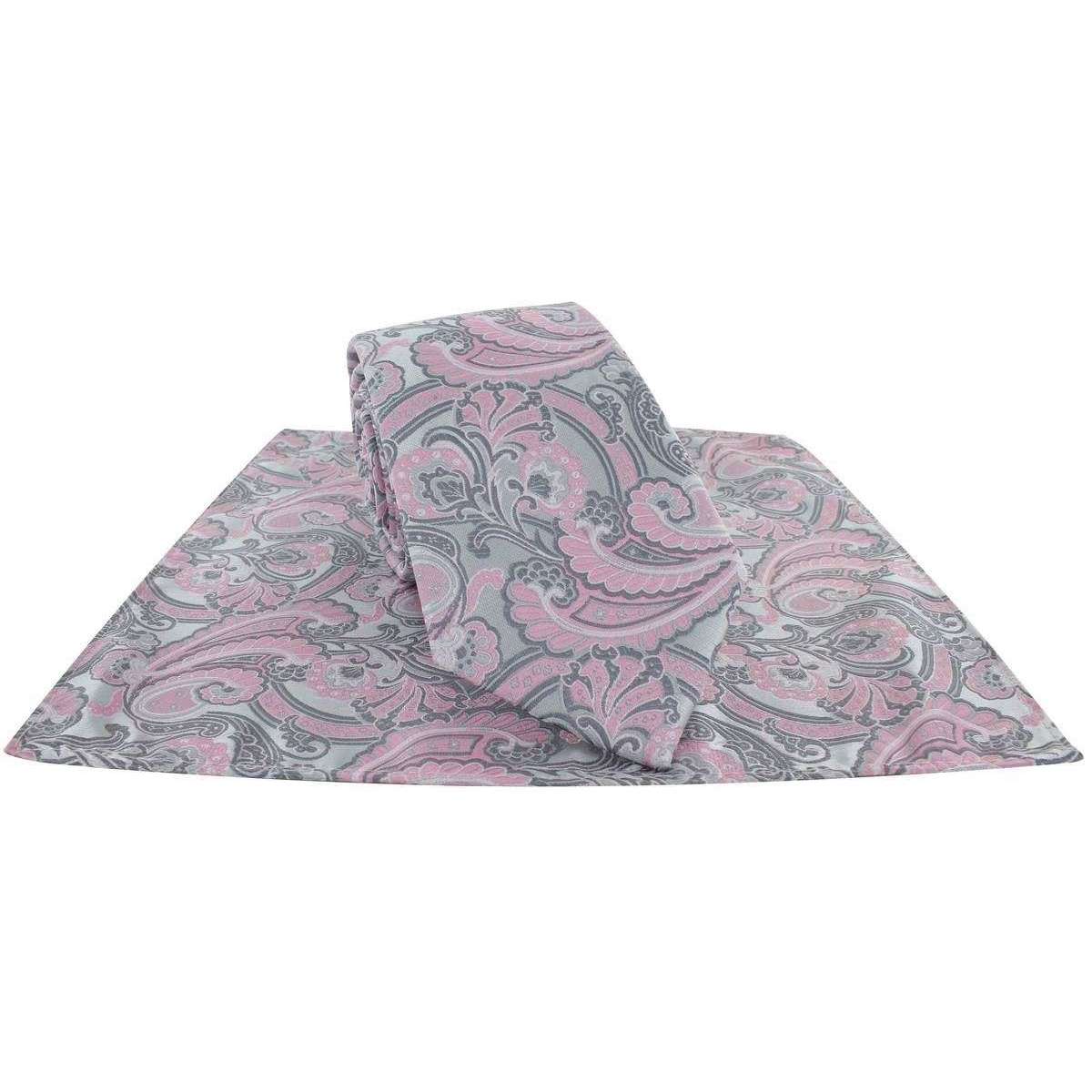 MICHELSONS OF LONDON ORNALENTAL POISLEY POLYESTER TIE AND POCKET SLACE - Silver / Pink