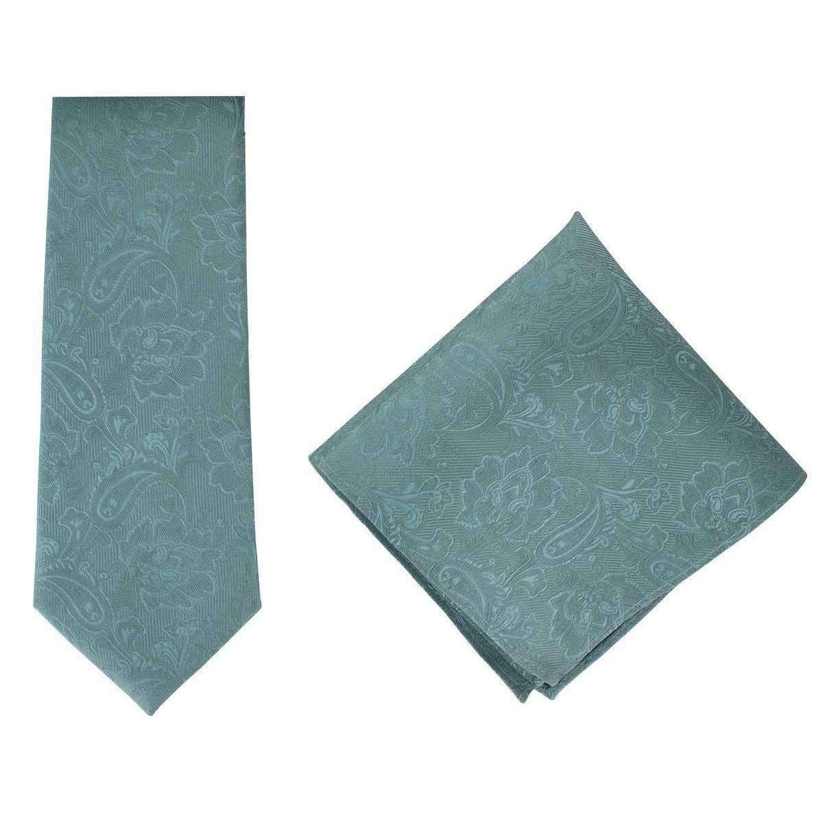 MICHELSONS OF LONDON ORNATE JACQUARD SILK TIE ET ​​POCKET SLACE SET - Teal