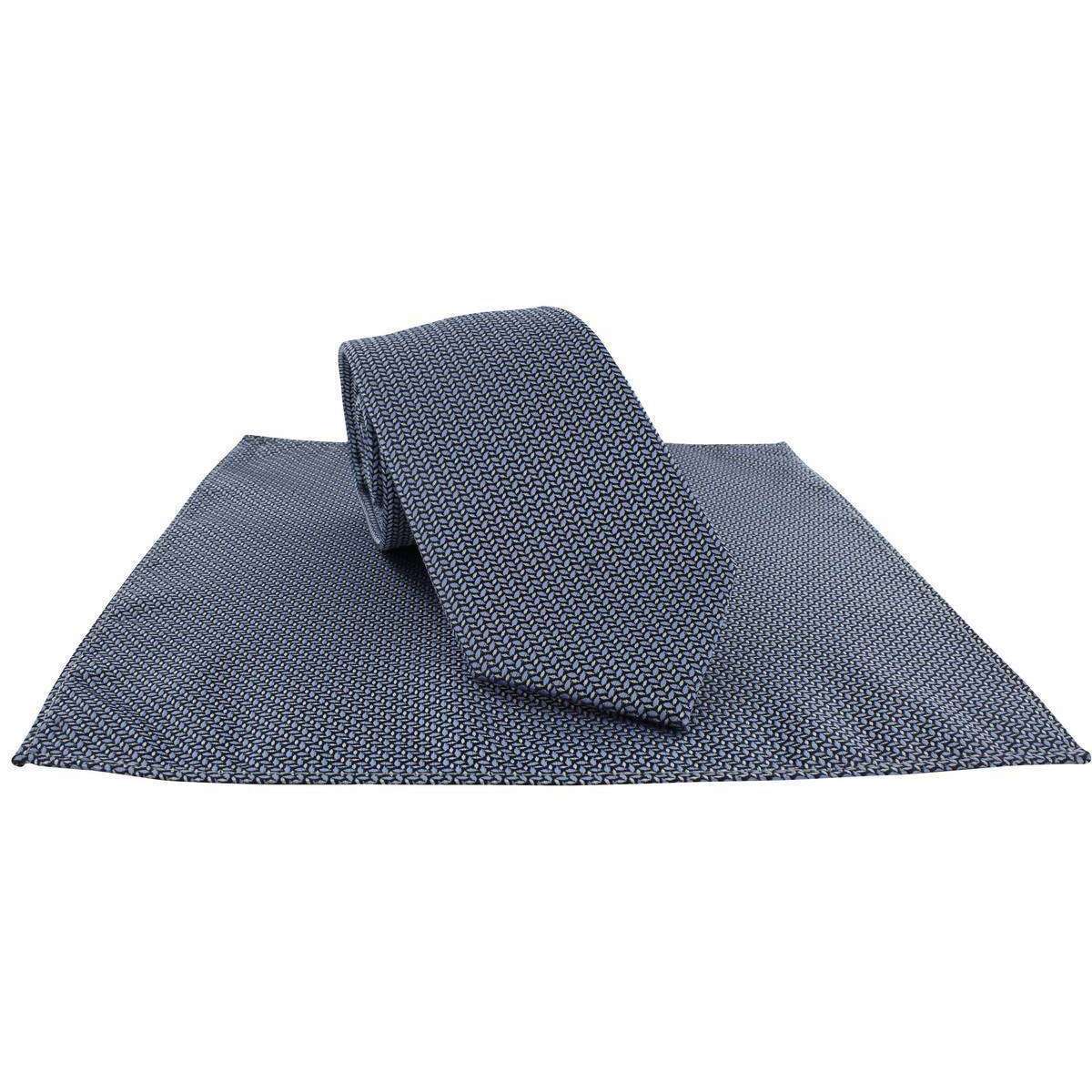 MICHELSONS OF LONDON PIP GEOMETRIC TIE and Pocket Square Set - Bleu