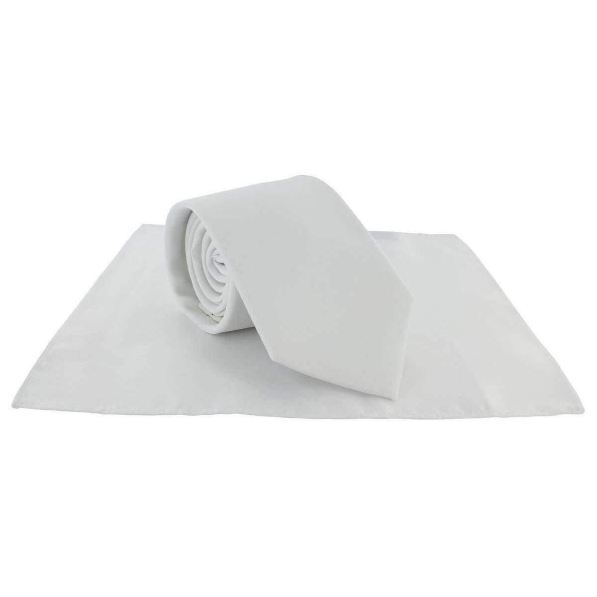 MICHELSONS OF LONDON PLAIN POLYESTER POCKET SLACE ET TIE - White