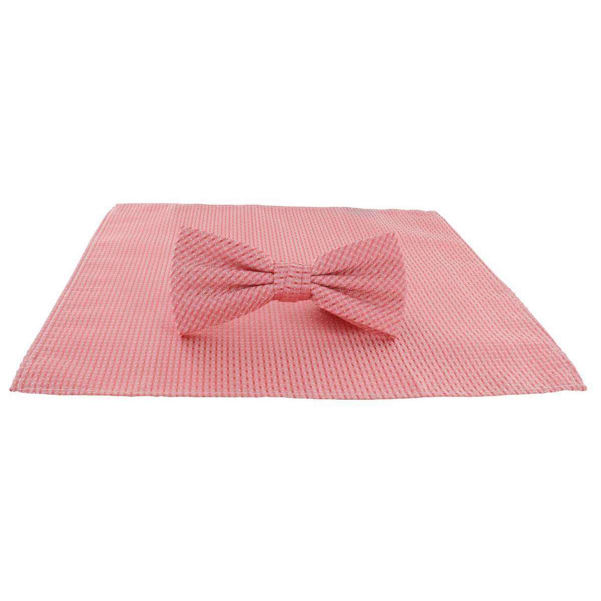 MICHELSONS OF LONDON Semi Plain Bow Tie et Pocket Square Set - Coral