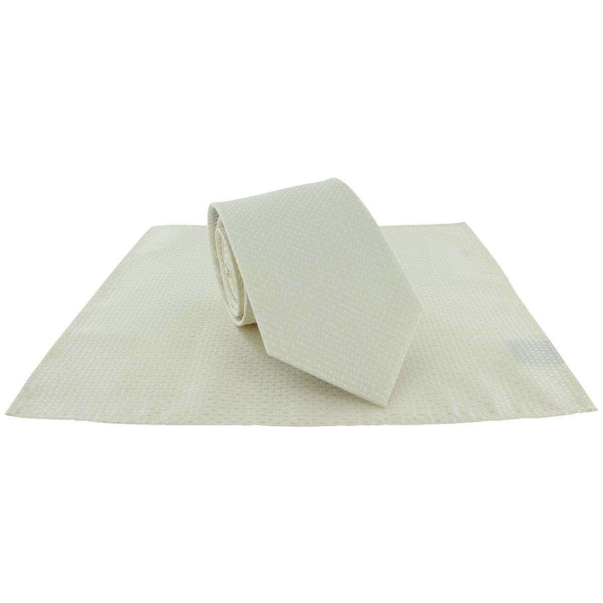 MICHELSONS OF LONDON Semi Plain Tie and Pocket Square Set - Cream