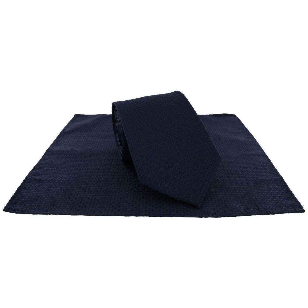MICHELSONS OF LONDON Semi Plain Tie et Pocket Square Set - Navy