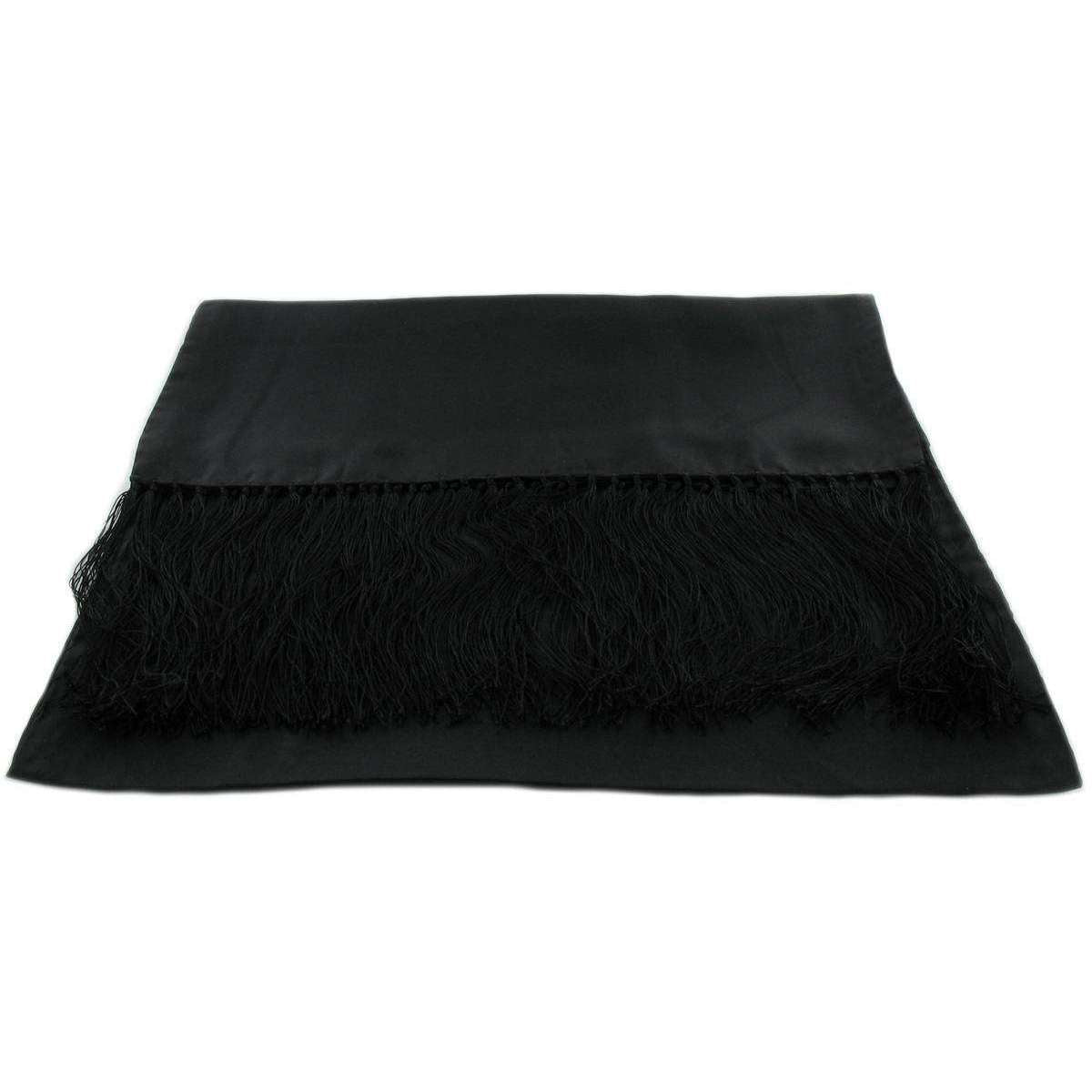 Cette large écharpe en soie noire a des glands à nœuds à la main à chaque extrémité de l'écharpe en soie et cette luxueuse écharpe noire noire est composée de 100% de la soie fine. Cette écharpe de robe noire intelligente est une écharpe en soie plus formelle et élégante, donc elle est idéale pour une soirée; L'écharpe en soie noire est large et peut être pliée afin que vous puissiez obtenir la taille parfaite. Cette écharpe en soie large Michelsons Black a également des glands à nœuds à la main à chaque extrémité.