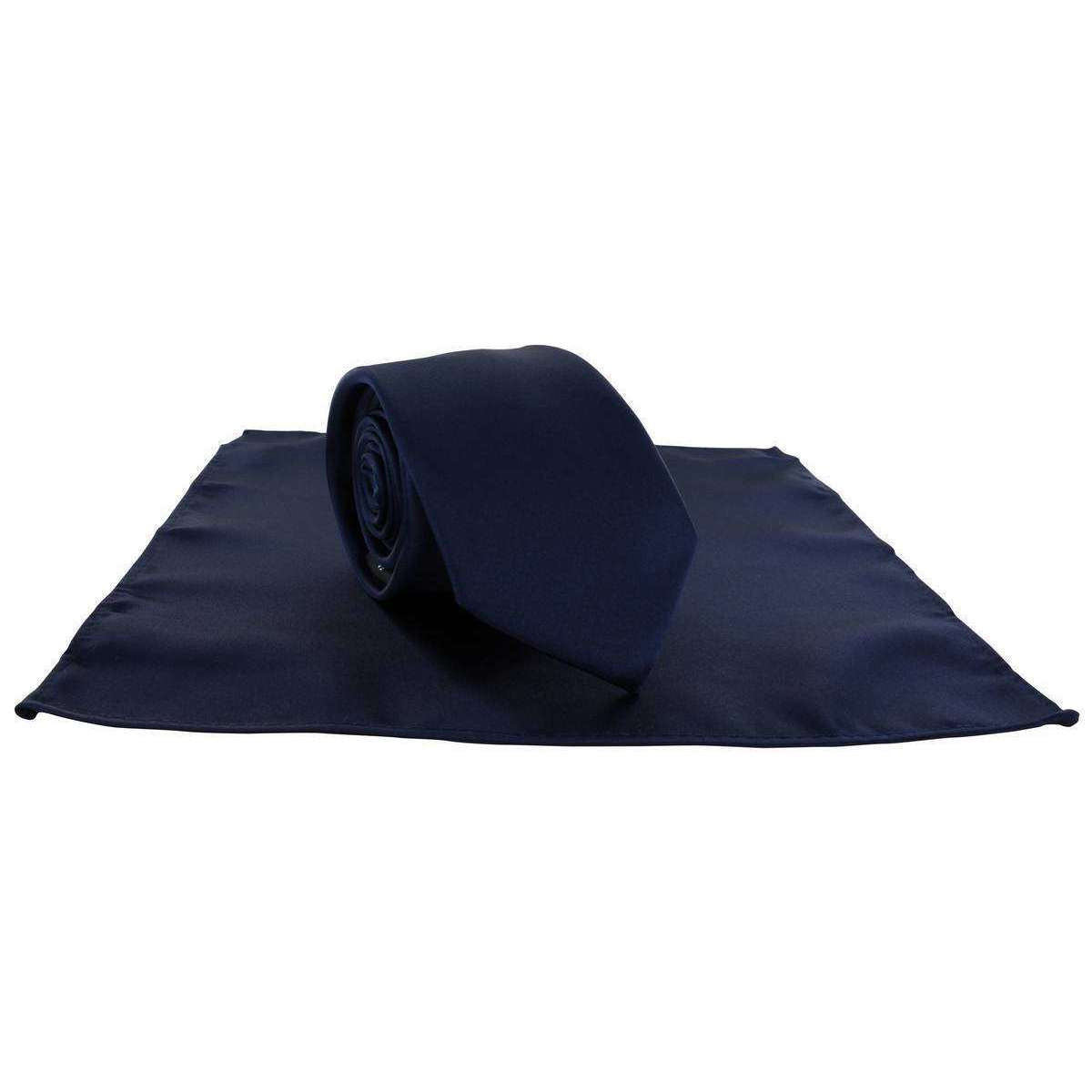 Michelsons of London Slin Satin Polyester Pocket Square and Tie Set - Navy