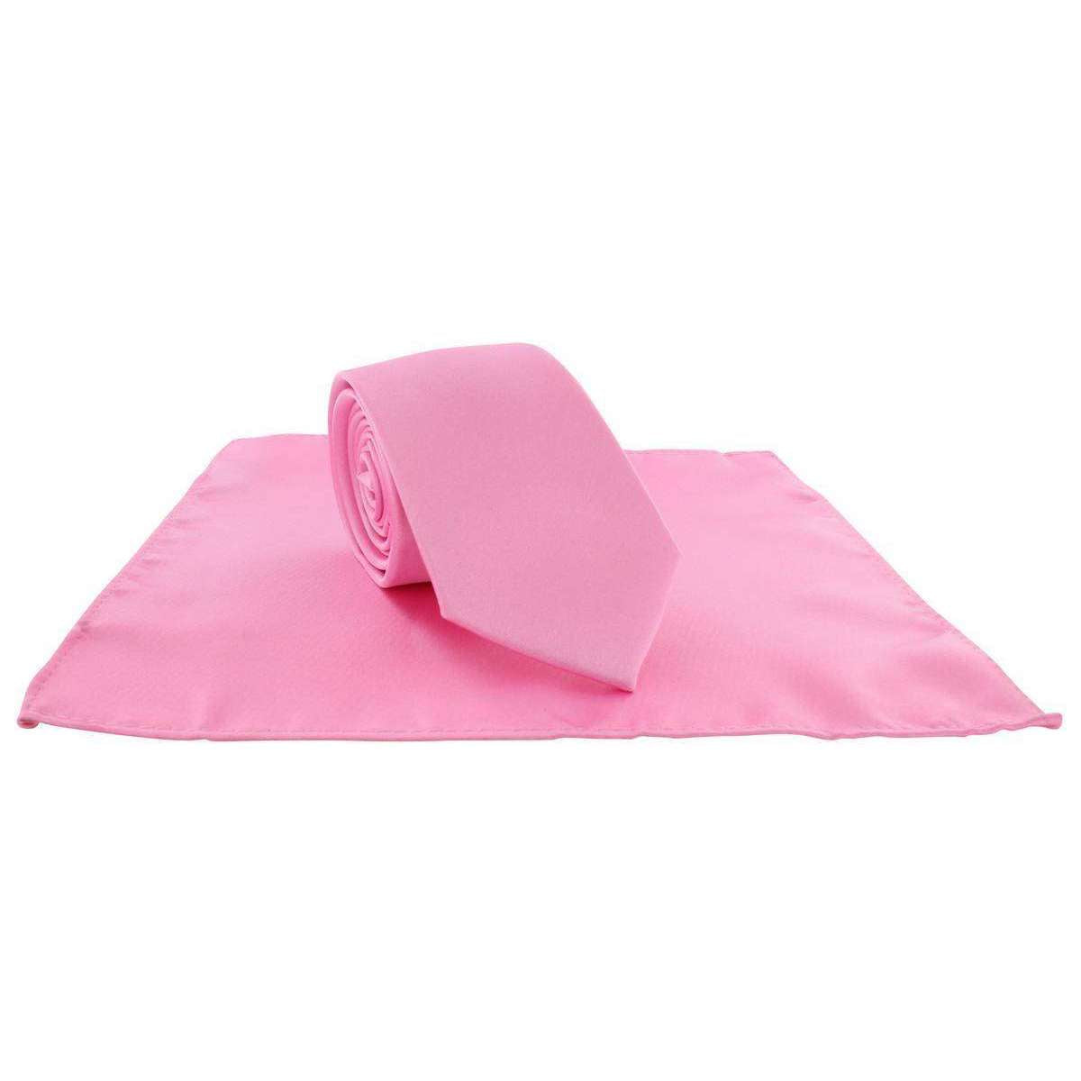 Michelsons of London Slin Satin Polyester Pocket Square and Tie Set - Pink