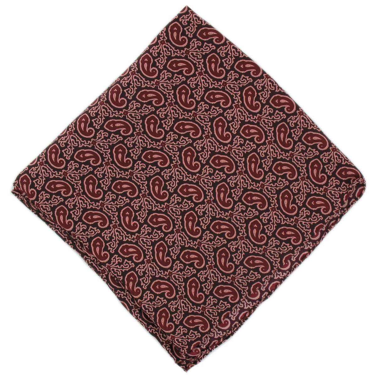 Michelsons of London Small Paisley Silk Handkerchief - Burgundy