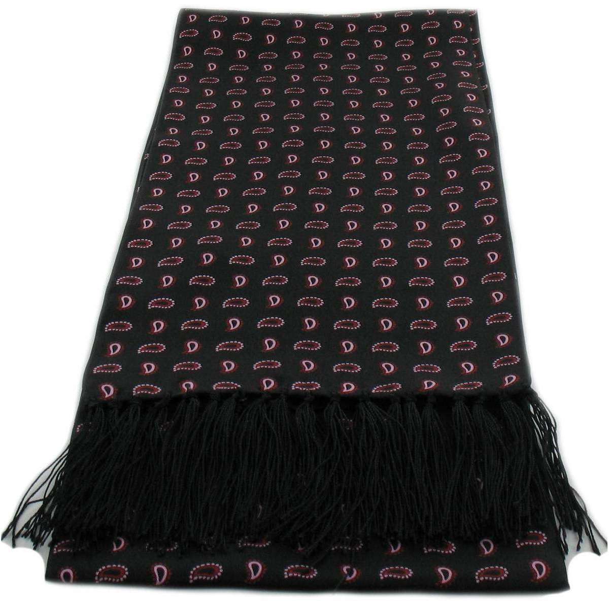 Cette petite écharpe noire en soie en pin a des glands à froufrous de 5 cm à la main à chaque extrémité pour donner à l'écharpe en soie un style supplémentaire. Cette écharpe en soie noire à la mode a le design de luxe de petit pin. Cette fabuleuse écharpe noire en soie en pin par Michelsons de Londres est composée de 100% de la soie fine, donc la douceur est incroyable.