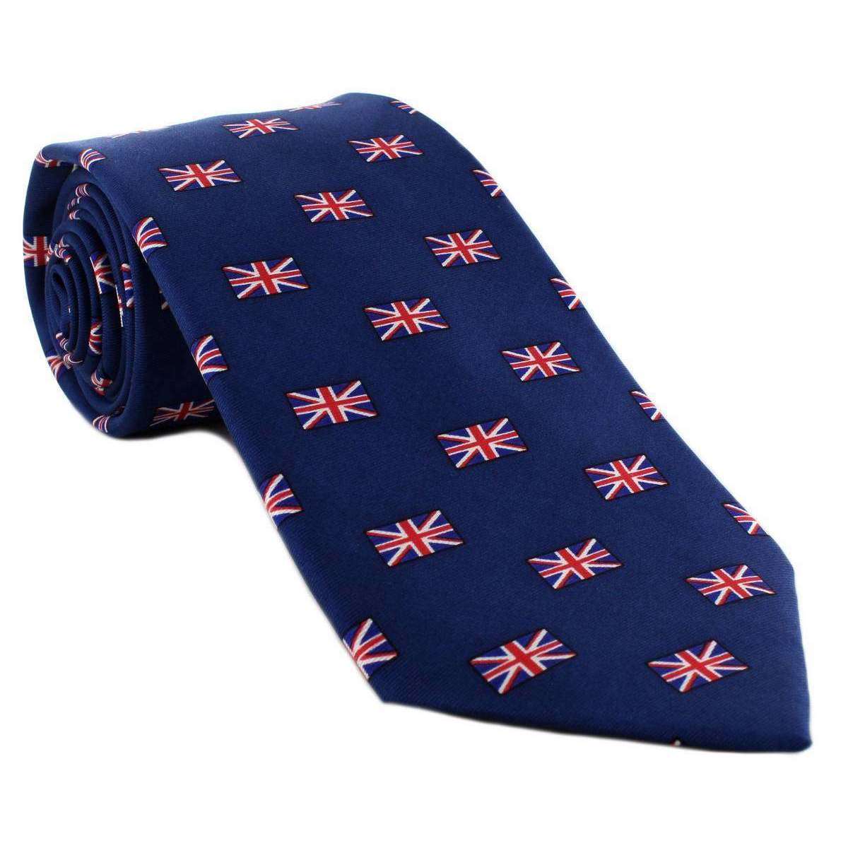 Michelsons of London Small Union Jack All Over Pattern Silk Tie - Navy/Red/White