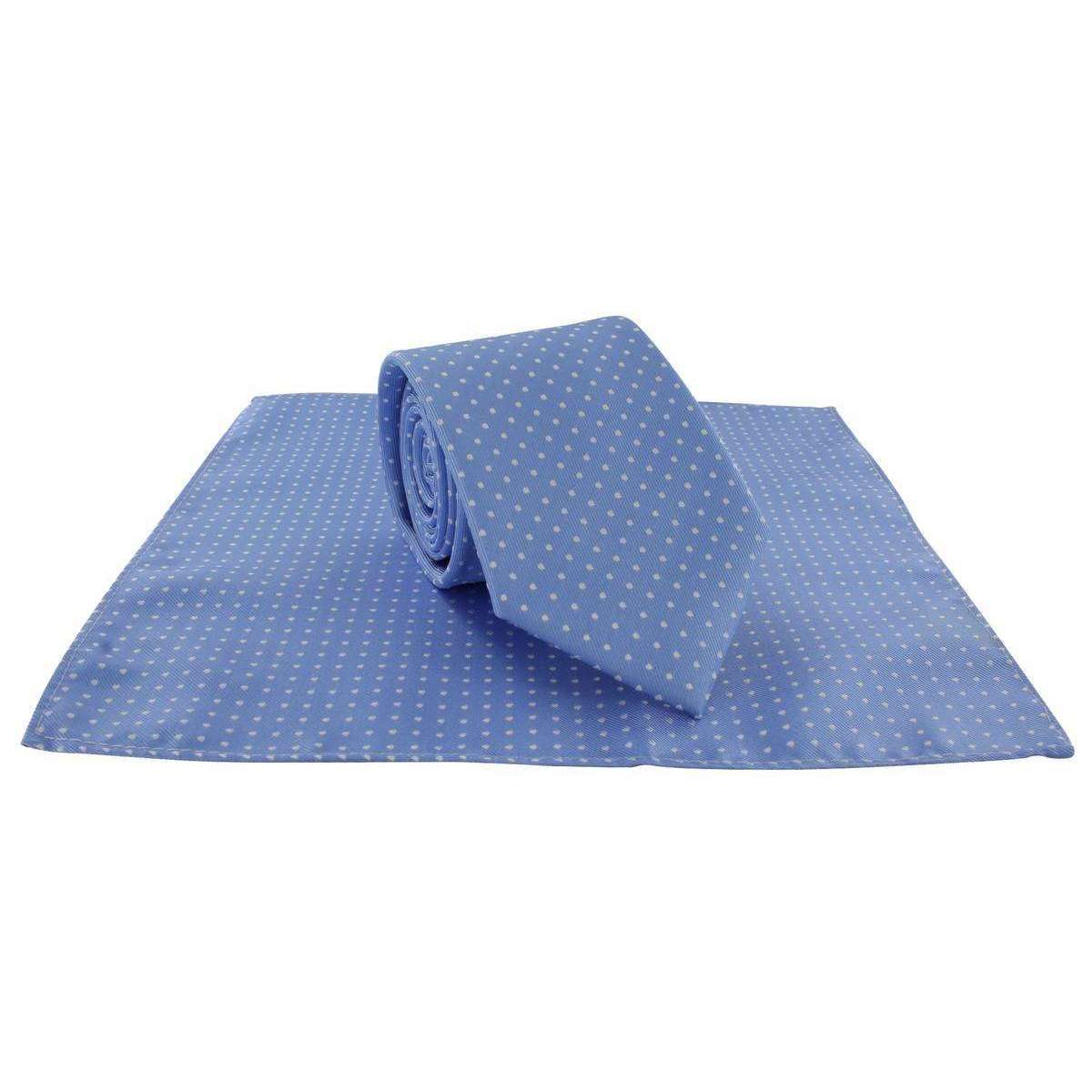 MICHELSONS OF LONDON SPOT POLYESTER TIE ET ​​POCKING SLACE SET - Bleu clair / blanc