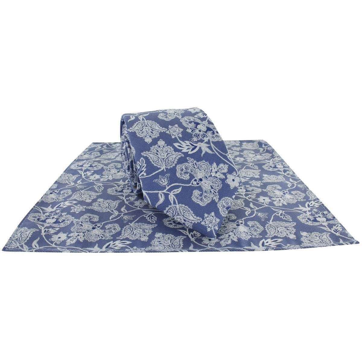 MICHELSONS OF LONDON TEPALLING FLORAL POLYESTER TIE et POCKING SLACE SET - Bleu