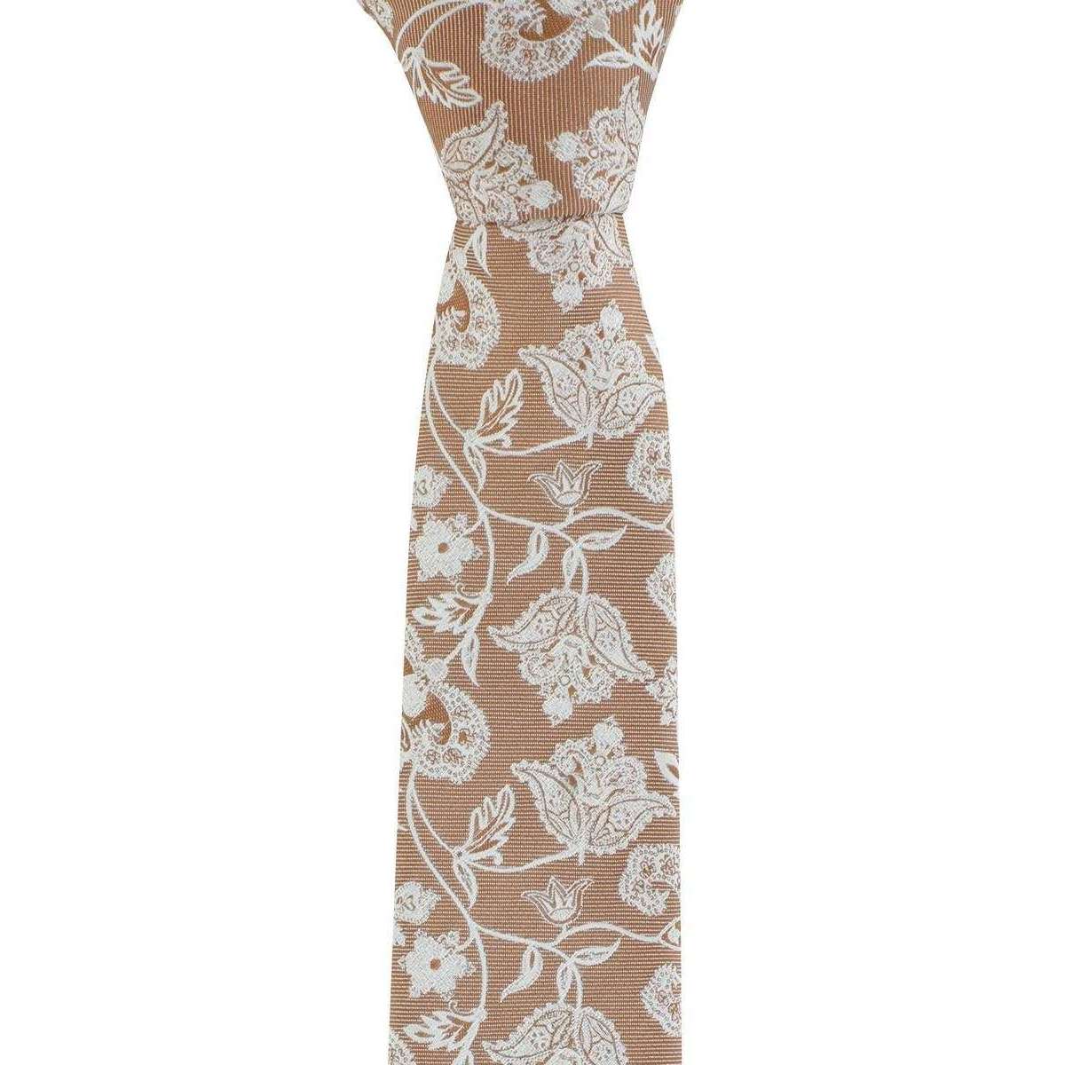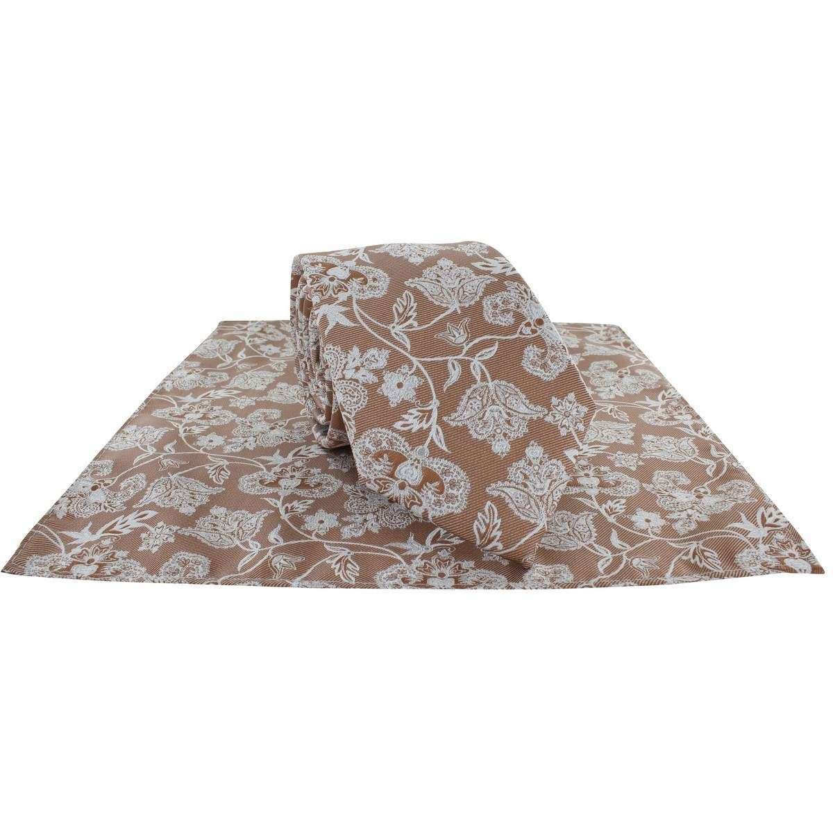 MICHELSONS OF LONDON TEPALLING FLORAL POLYESTER TIE et POCKING SLACE SET - BROWN