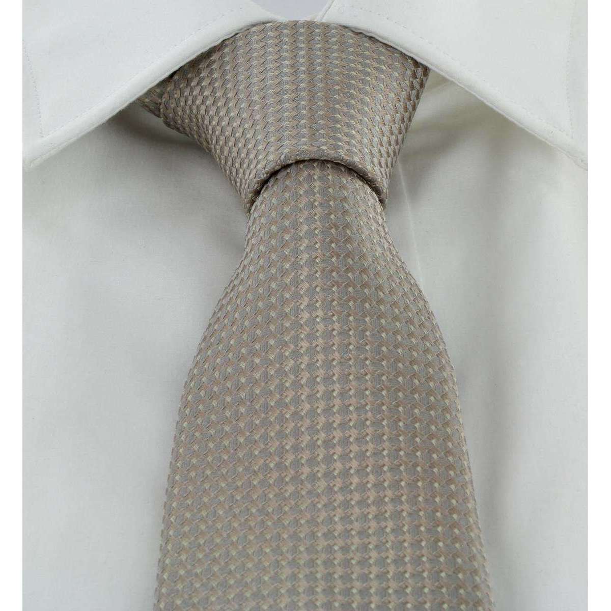 MICHELSONS OF LONDON TEXTURANT GEO SILK TIE AND POCKING SLACE - TAUPE