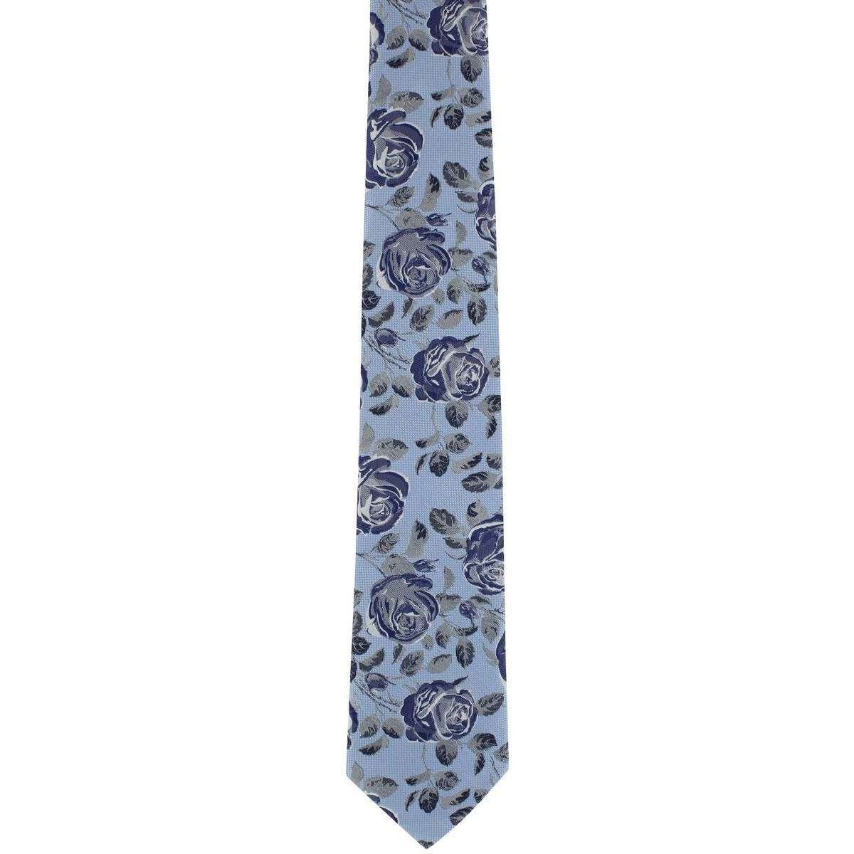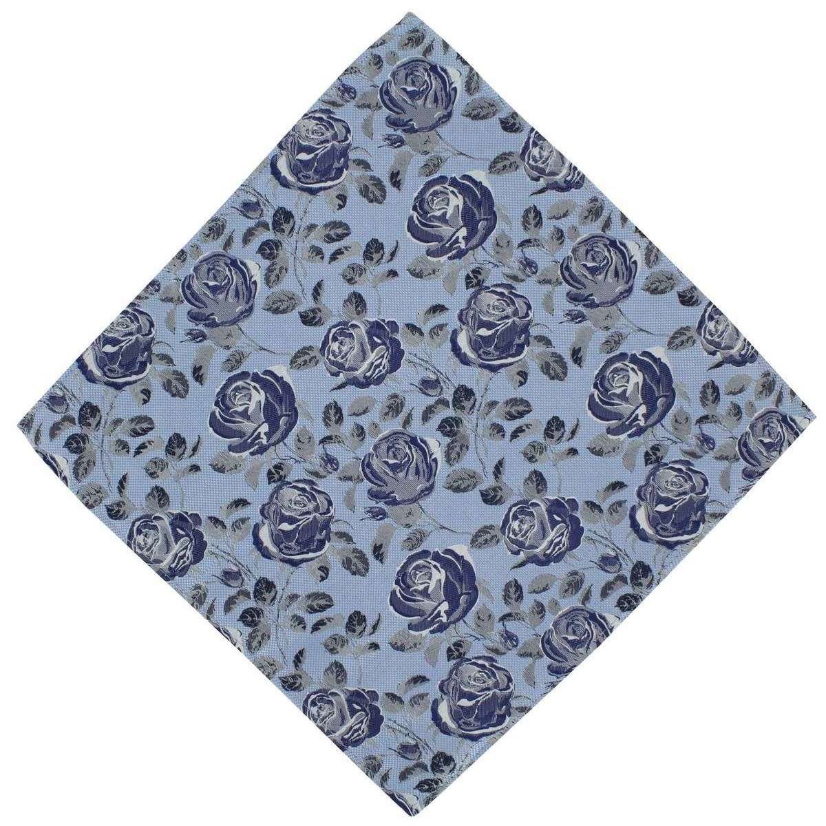MICHELSONS OF LONDON TEXTURANT ROSE FLORAL POLYESTER TIE AND POCKET SLACE SET - BLUE / NAVIY