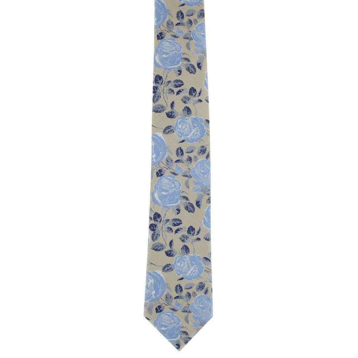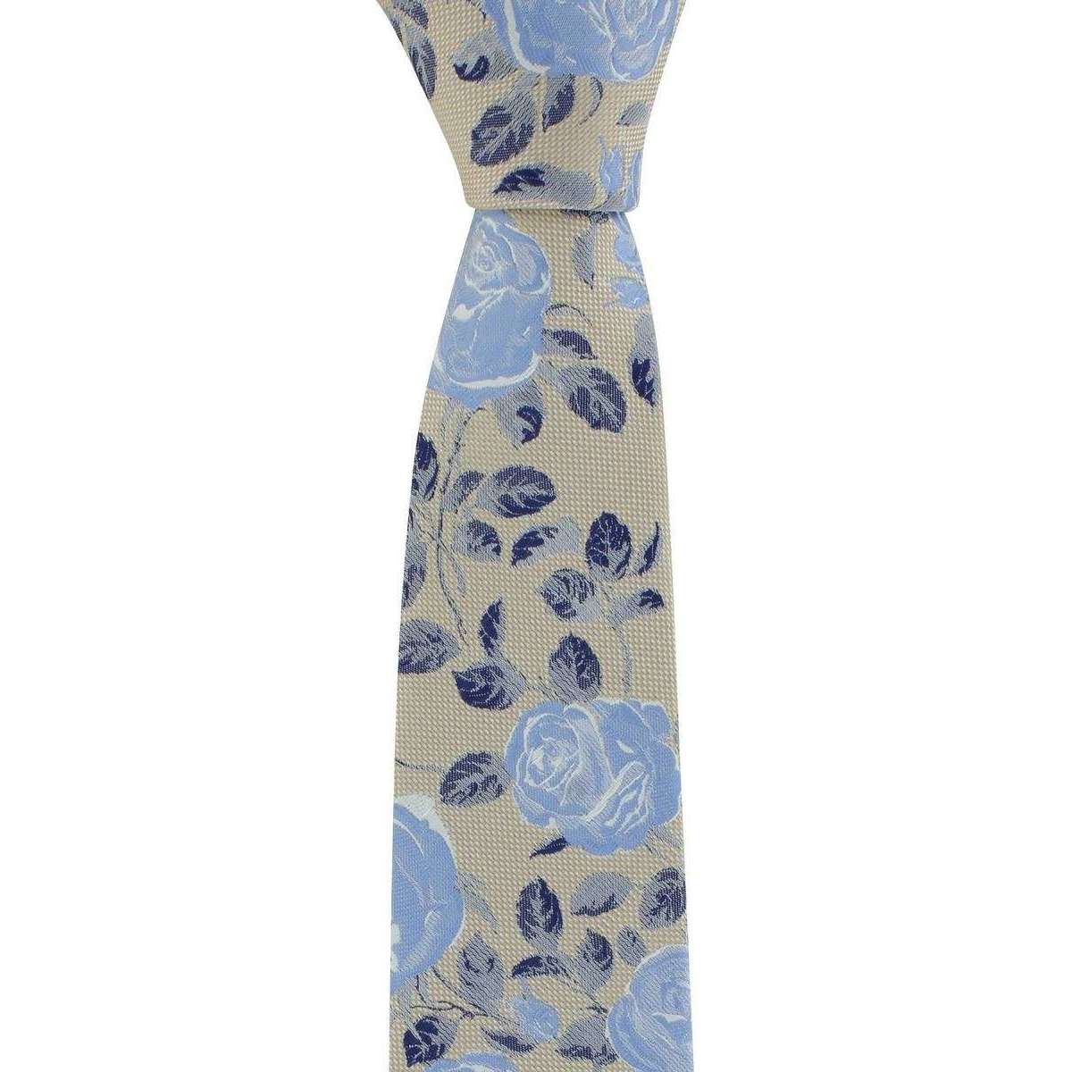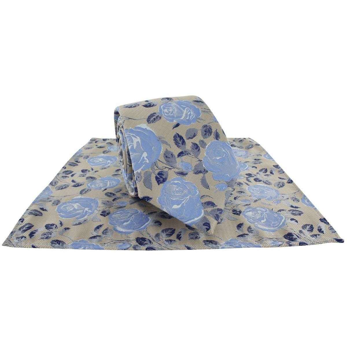 MICHELSONS OF LONDON TEXTURANT ROSE FLORAL POLYESTER TIE AND POCKET SLACE SET - Taupe / Blue