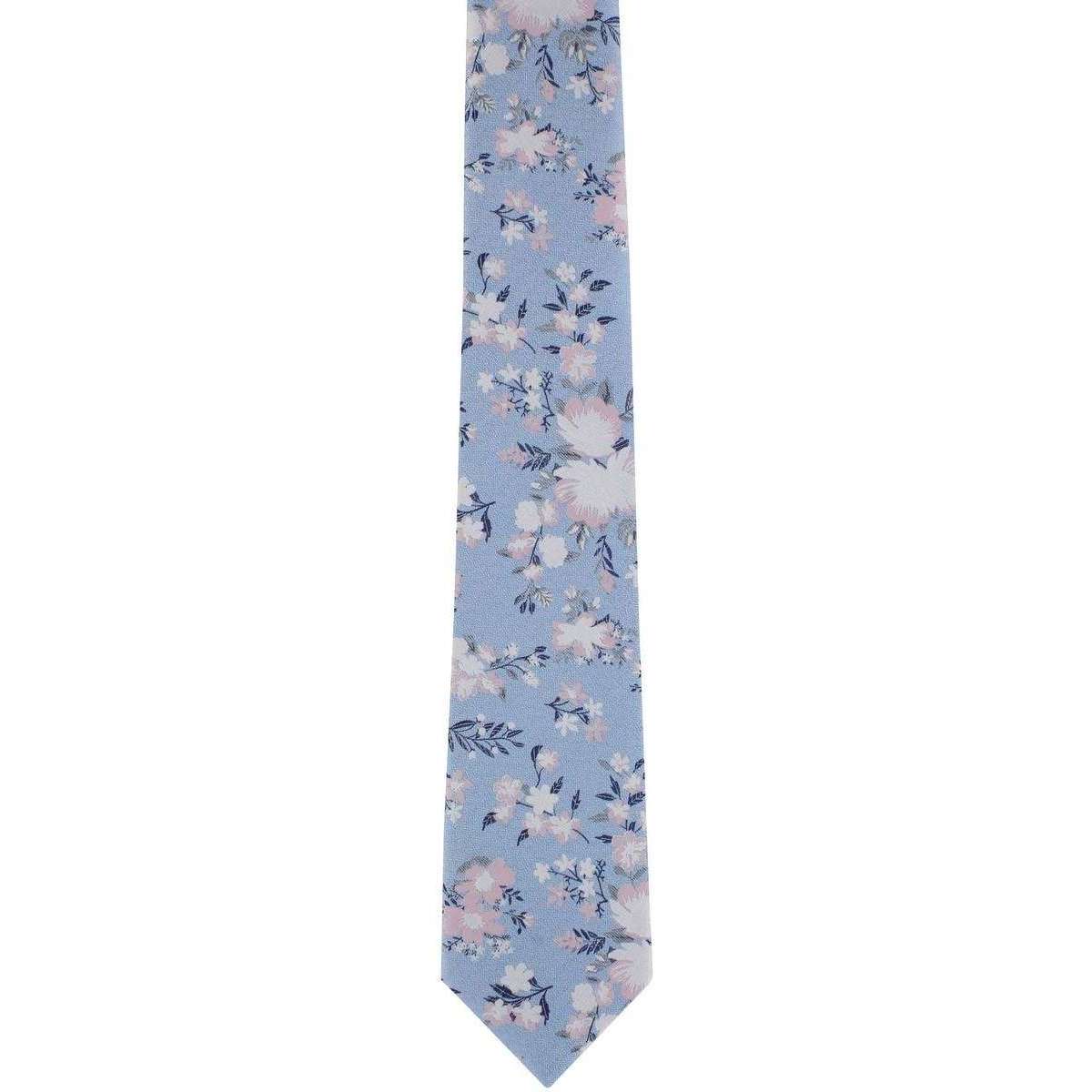 MICHELSONS OF LONDON TEXTURANT TEXTURE SPRINGLIE FLORAL POLYESTER TIE ET ​​POCKET SLACE SET - BLUE / PINK