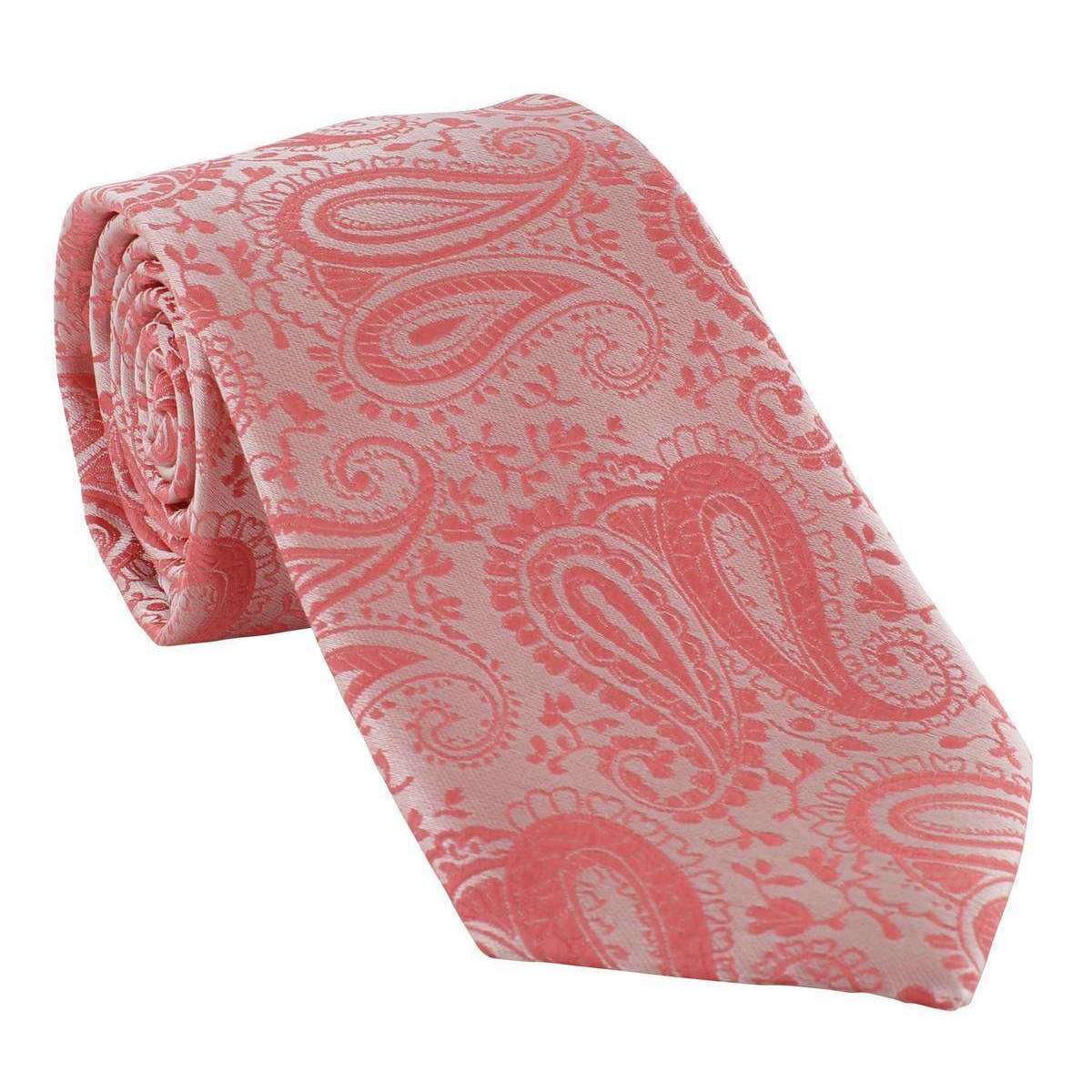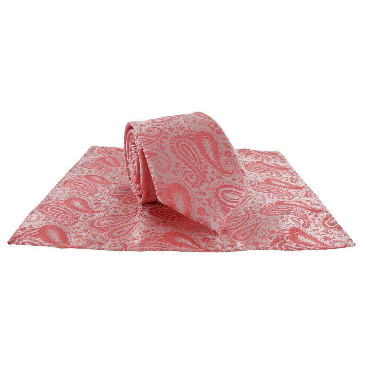 MICHELSONS OF LONDON TONAL POLYESTER PACEY POCKET SLACE ET TIE SET - CORAL PINK