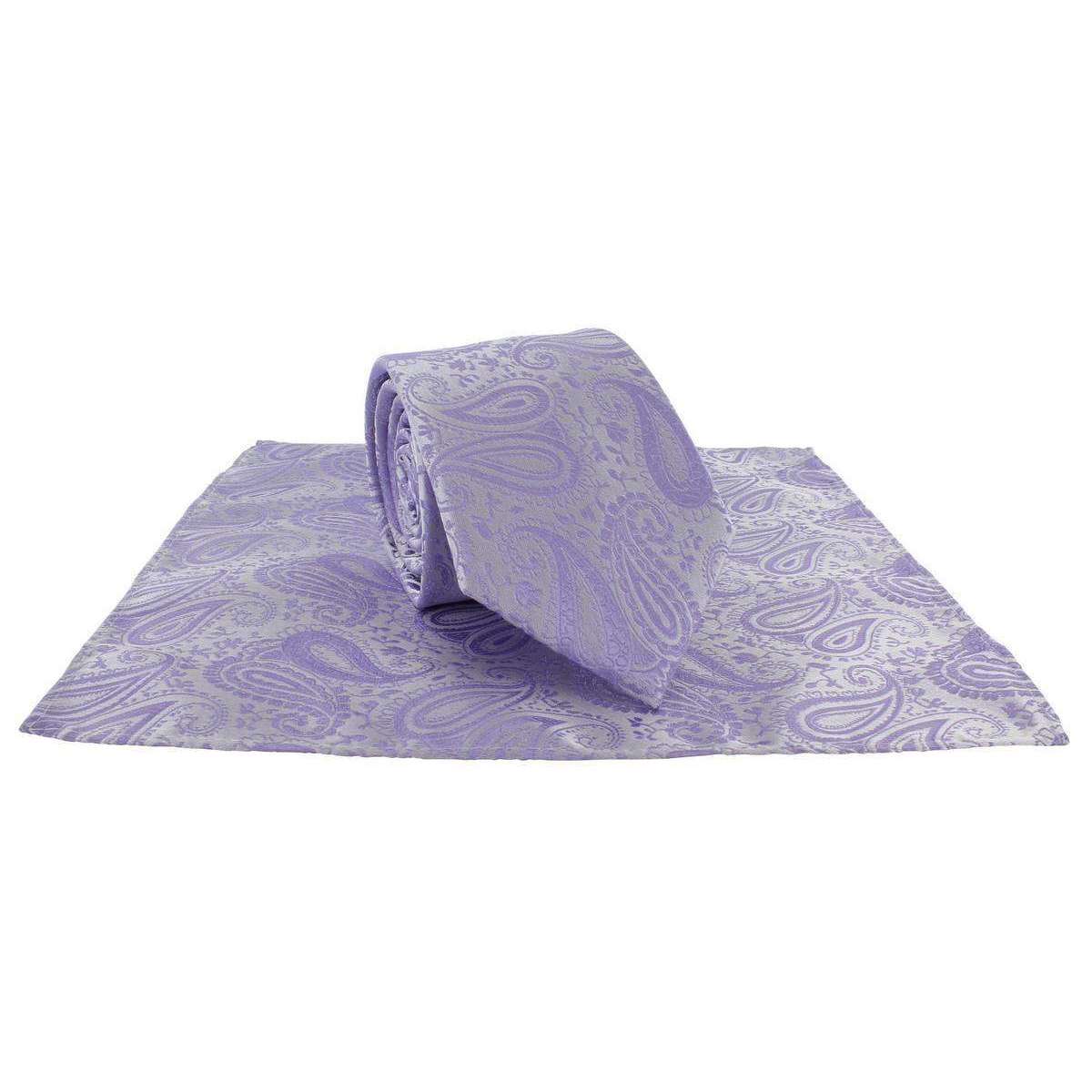 MICHELSONS OF LONDON TONAL POLYESTER PACESLEY POCKET SLACE ET TIE SETT - LILAC