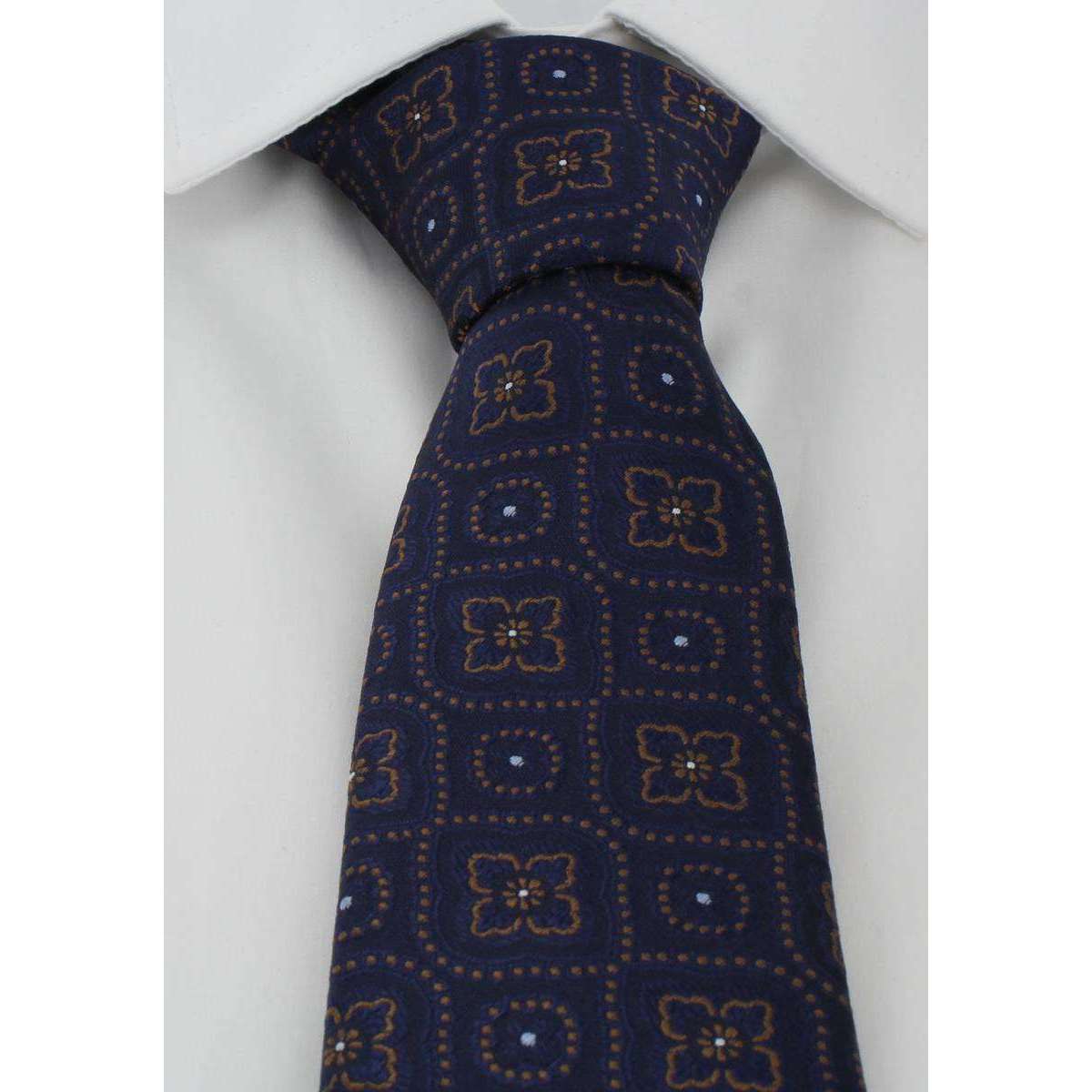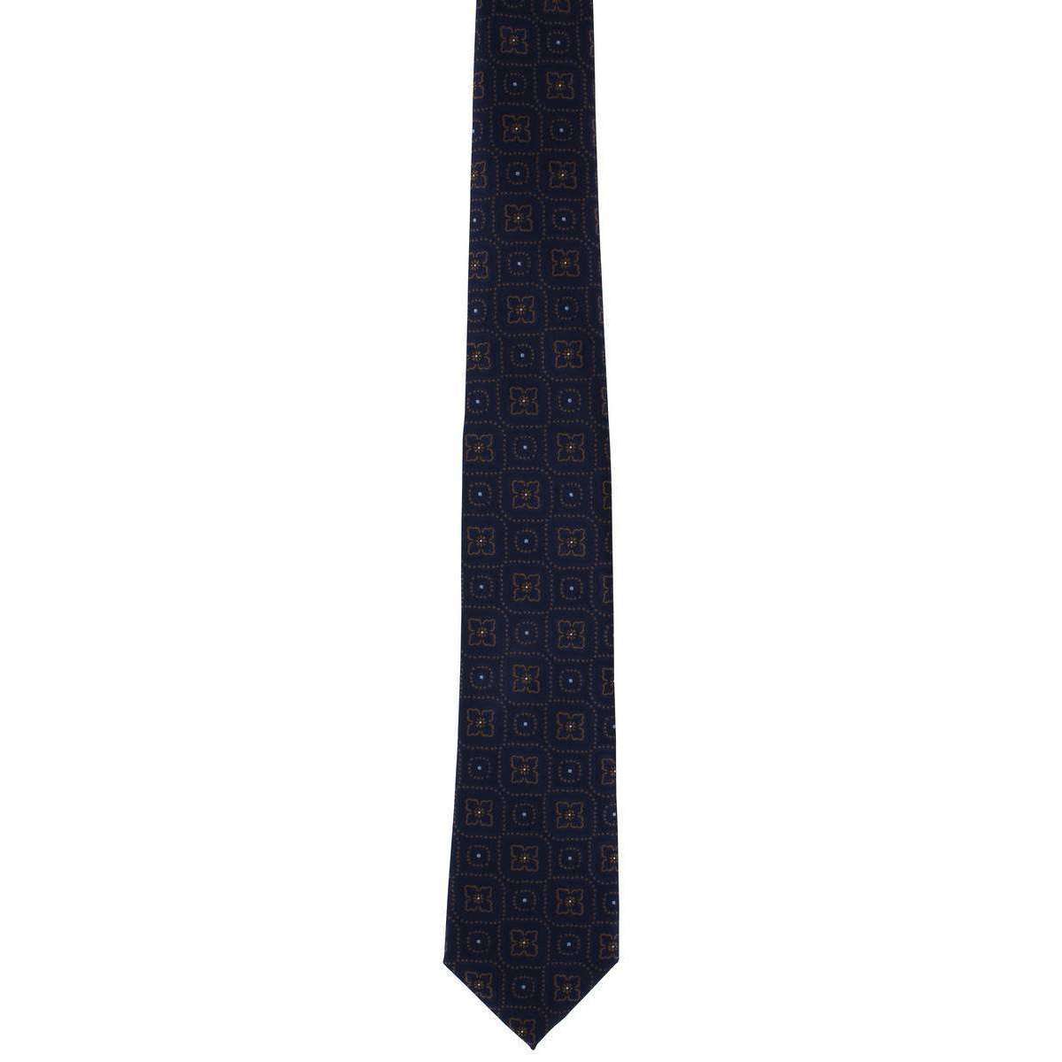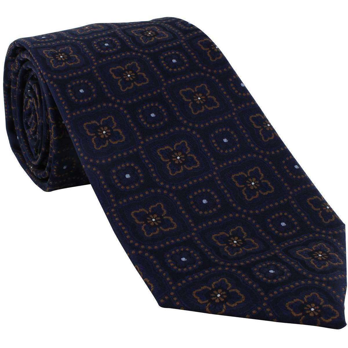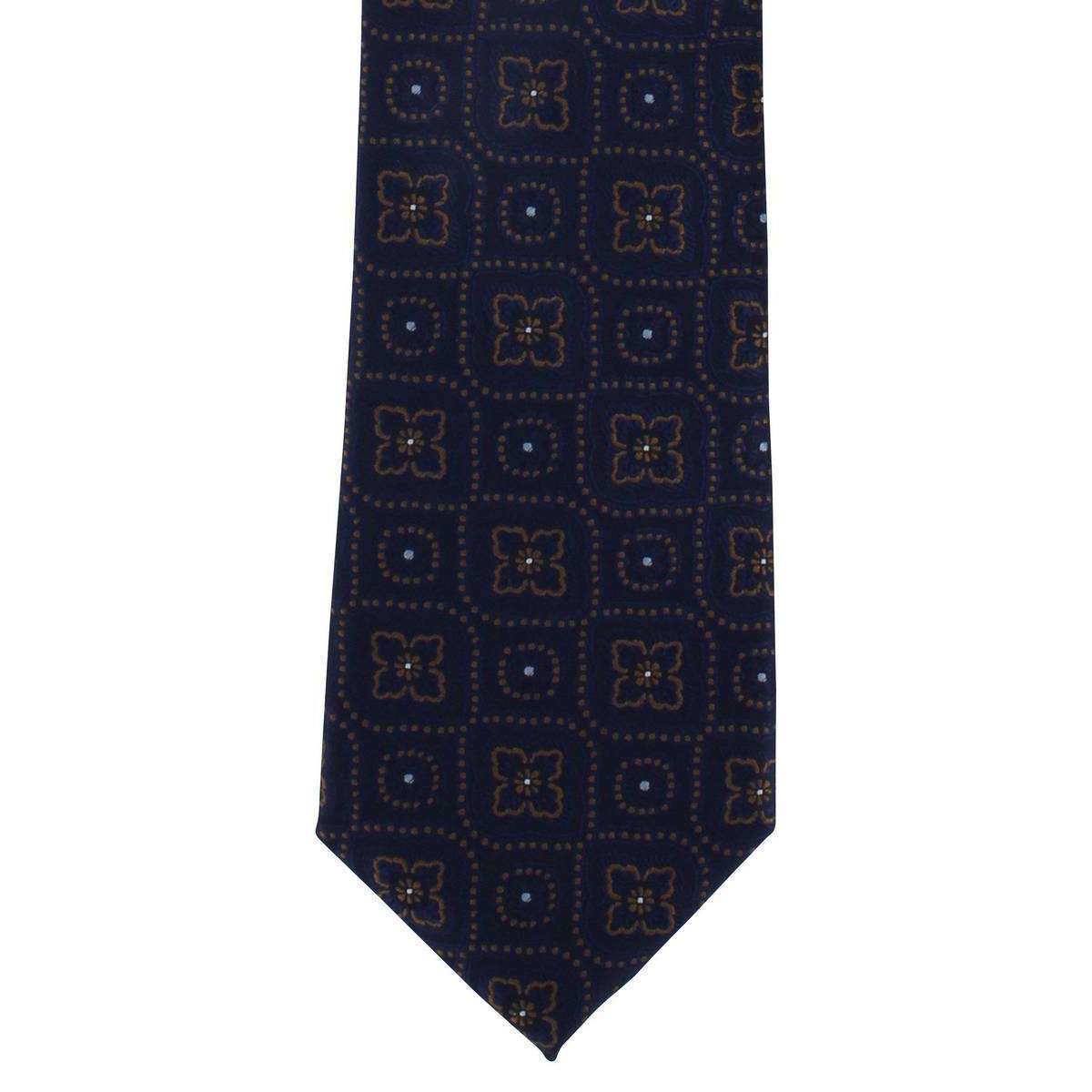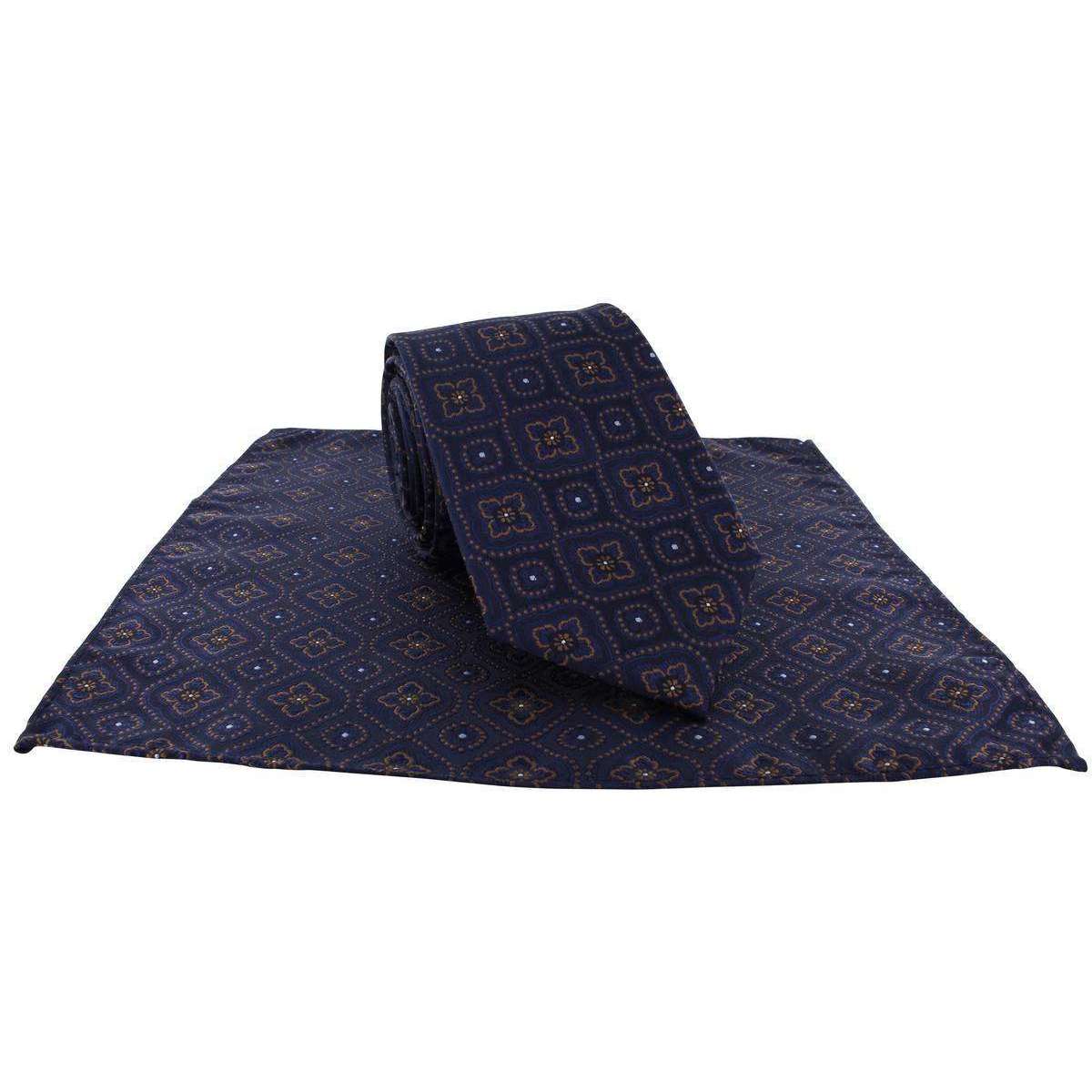 MICHELSONS OF LONDON TRADACTION MEDALLION TIE AND POCKING SLACE SET - Navy / Brown