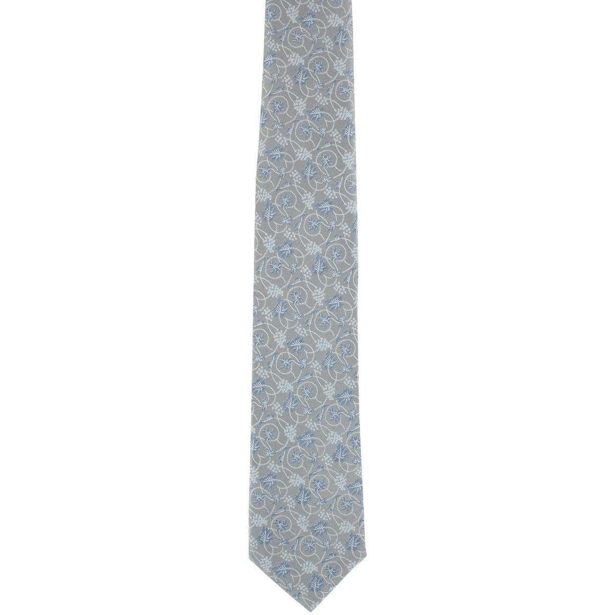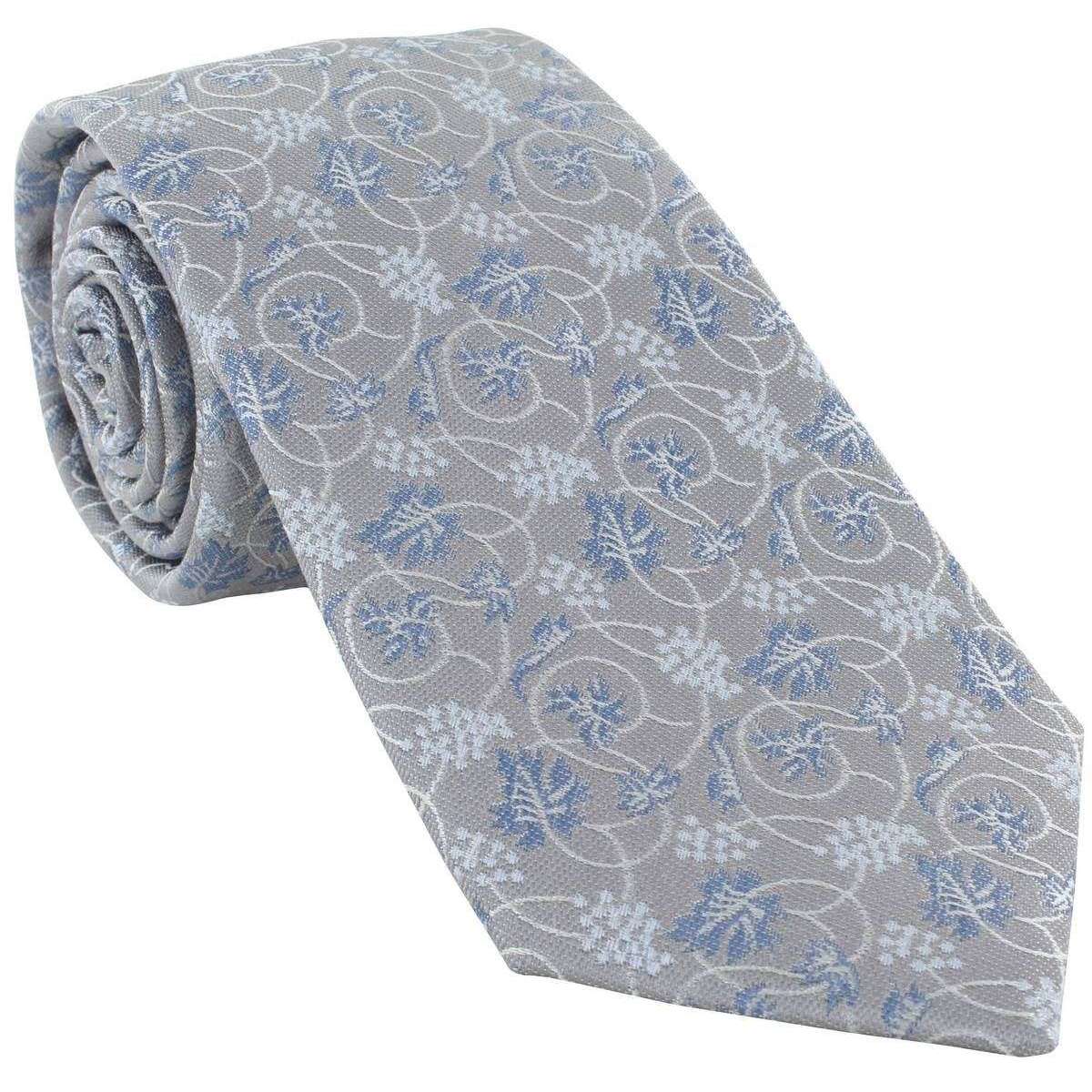 MICHELSONS OF LONDON TRAVINE VINE VINE FLORAL SILK TIE - Silver / Blue