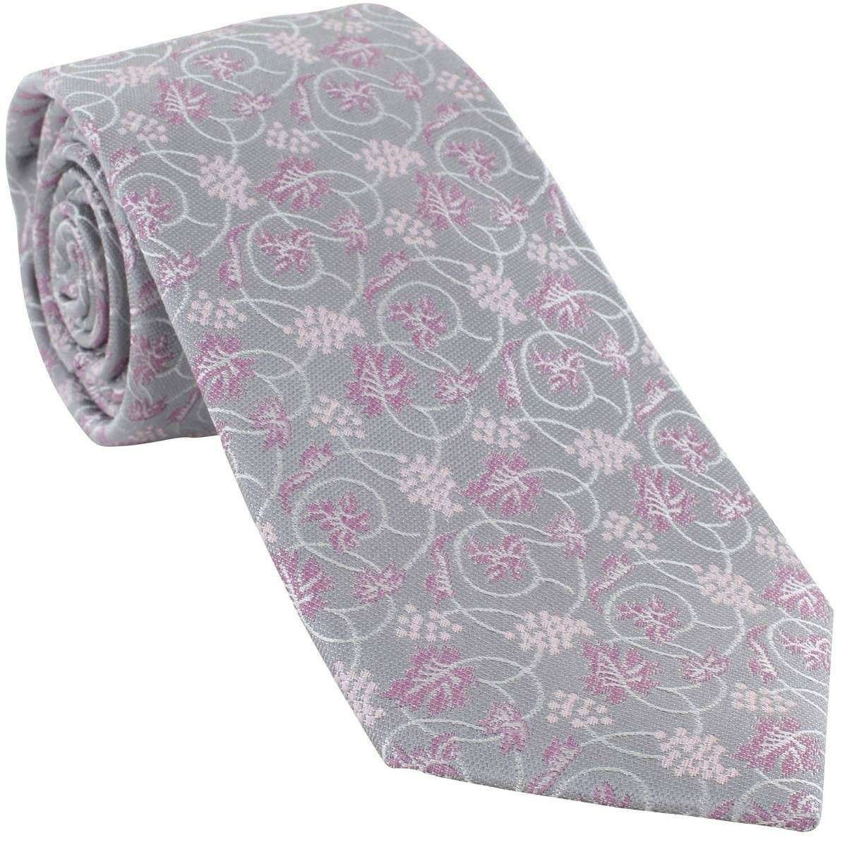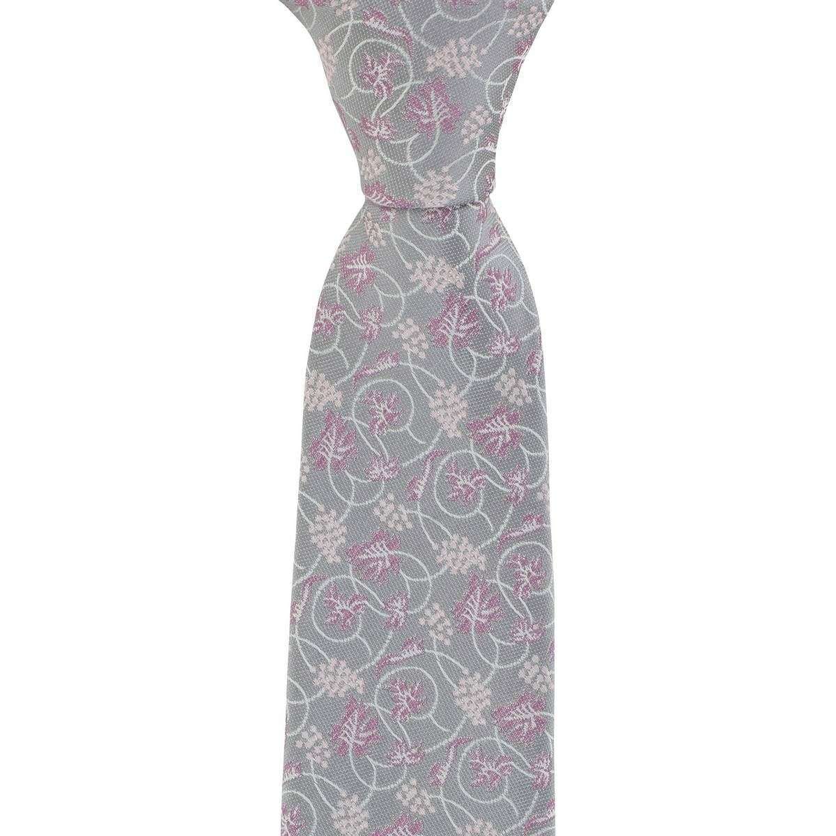 MICHELSONS OF LONDON TRAVINE VINE VINE FLORAL SILK TIE - Silver / Pink