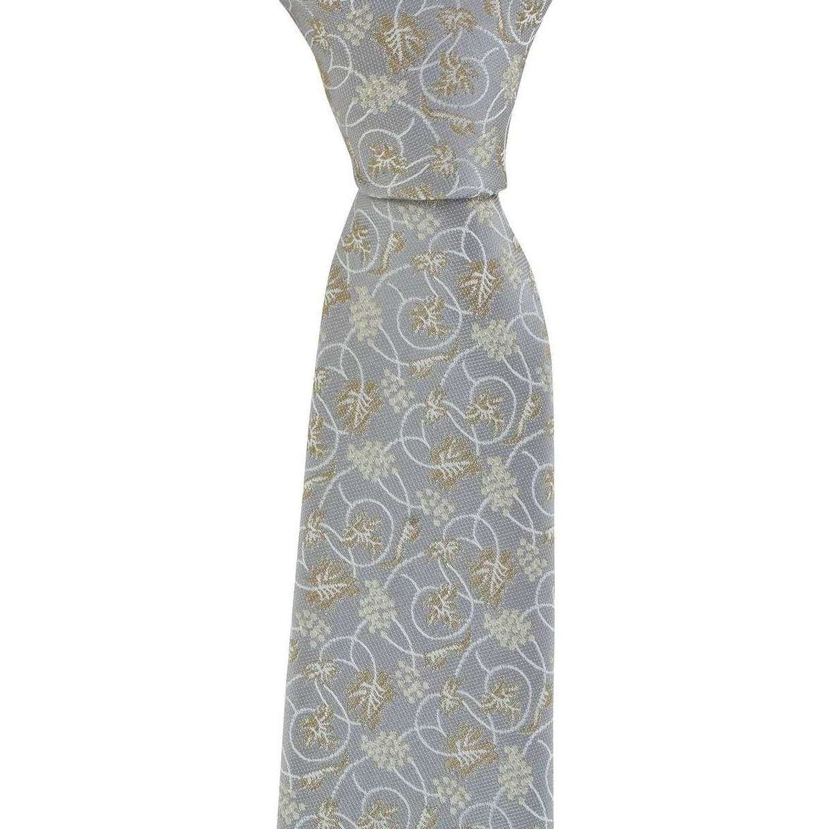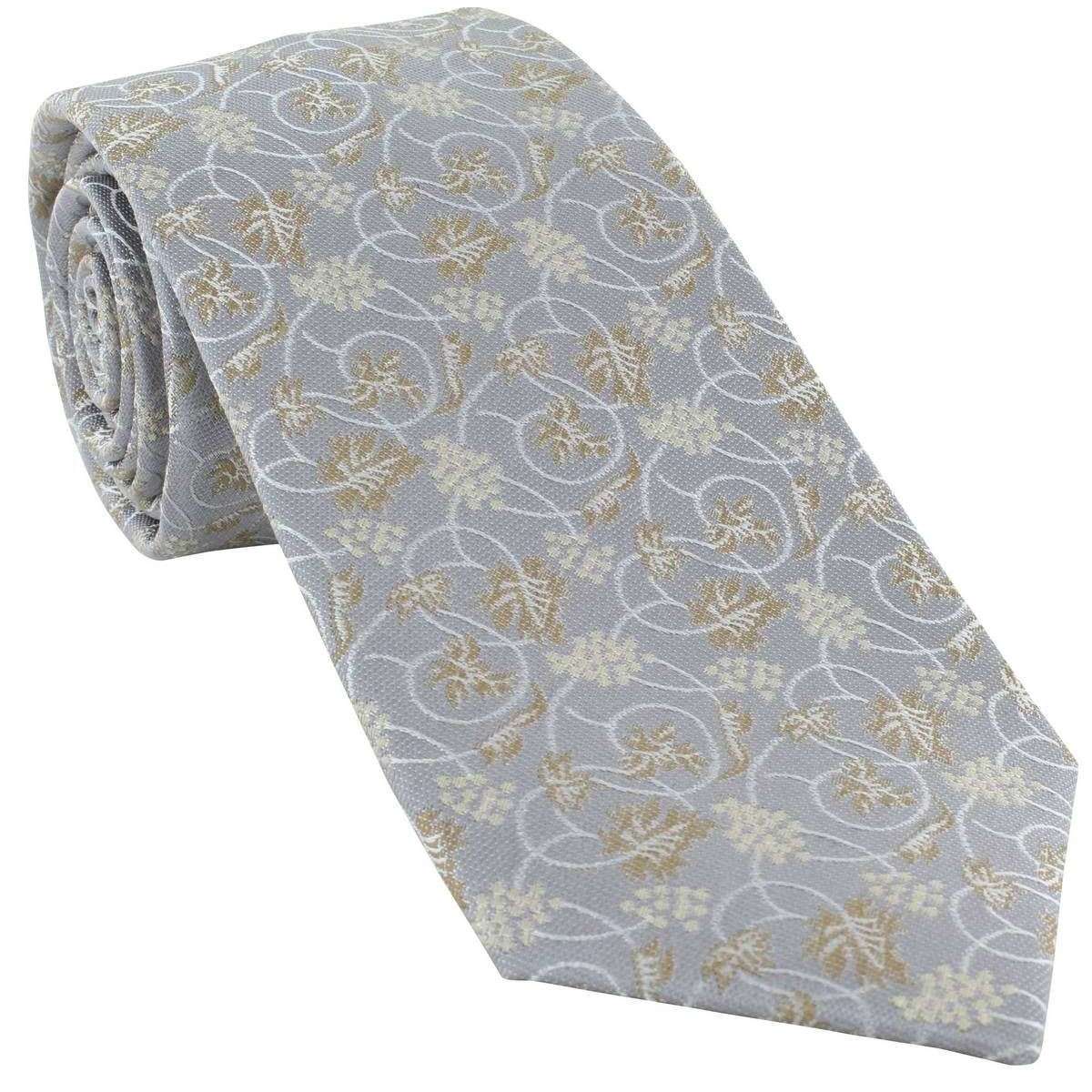 MICHELSONS OF LONDON TRAVINE VINE VINE FLORAL SILK TIE - Silver / Taupe